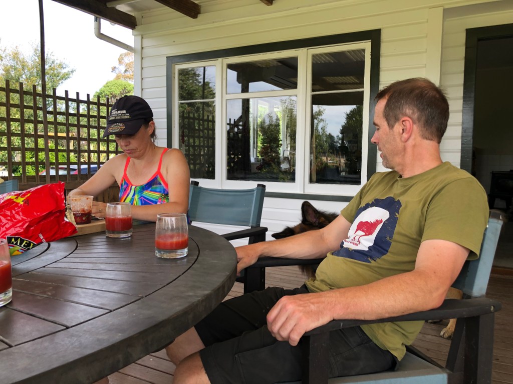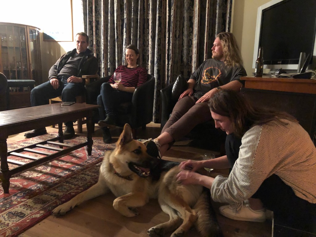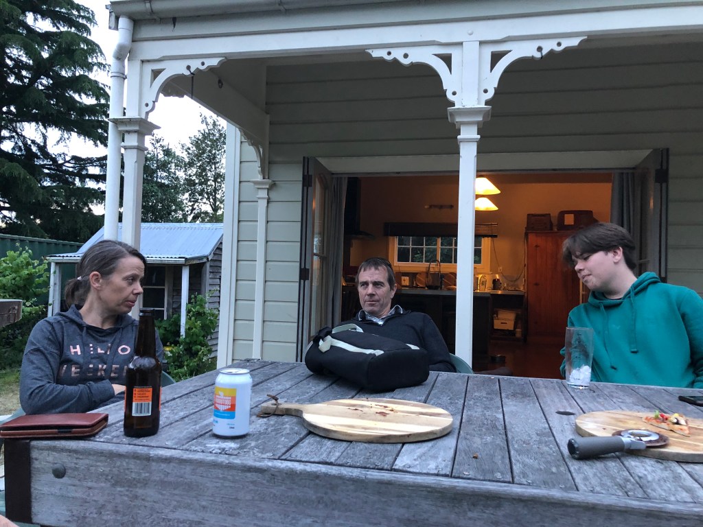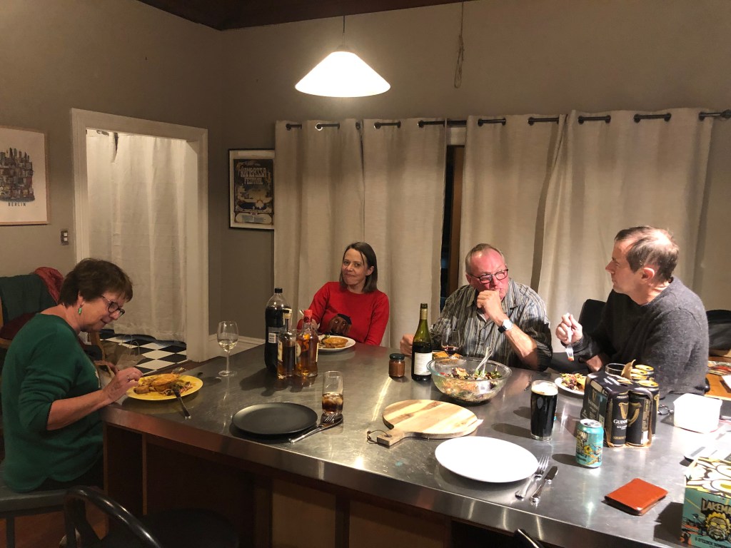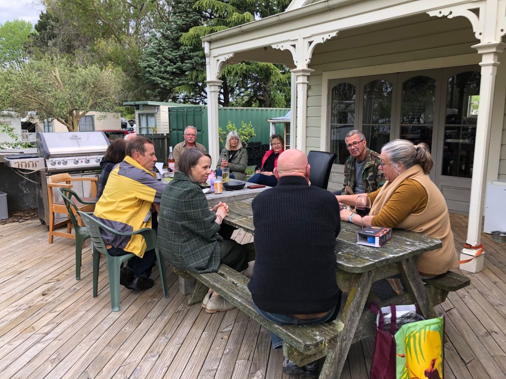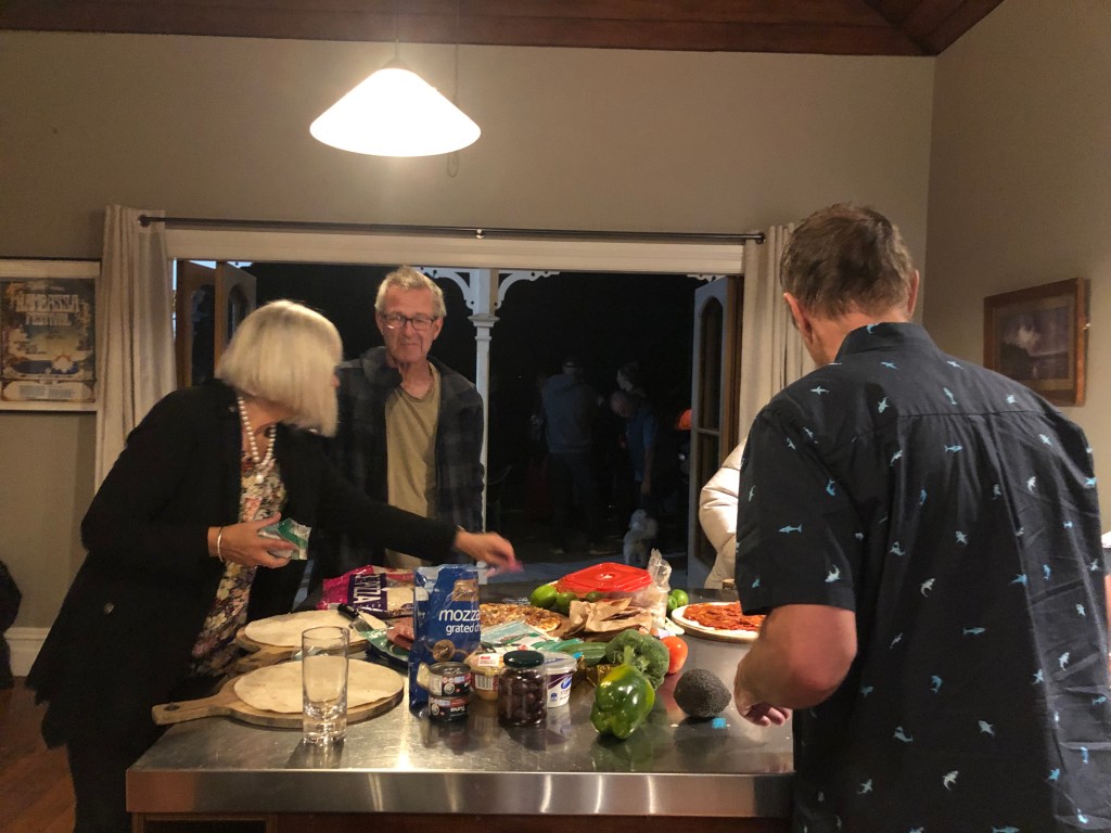 Letzte Woche Freitag hatten wir spontan ein paar Leute hier, das war echt nett. Lustig ist, dass solche Treffen meist sehr früh anfangen, so am Spätnachmittag, aber dafür auch zwischen 20.00 und 21.00 Uhr rum sind – bei uns wäre das jedes Mal eine lange Nacht. Außerdem bringt hier jeder immer seine eigenen Getränke mit, das ist in Neuseeland so üblich. 🙂