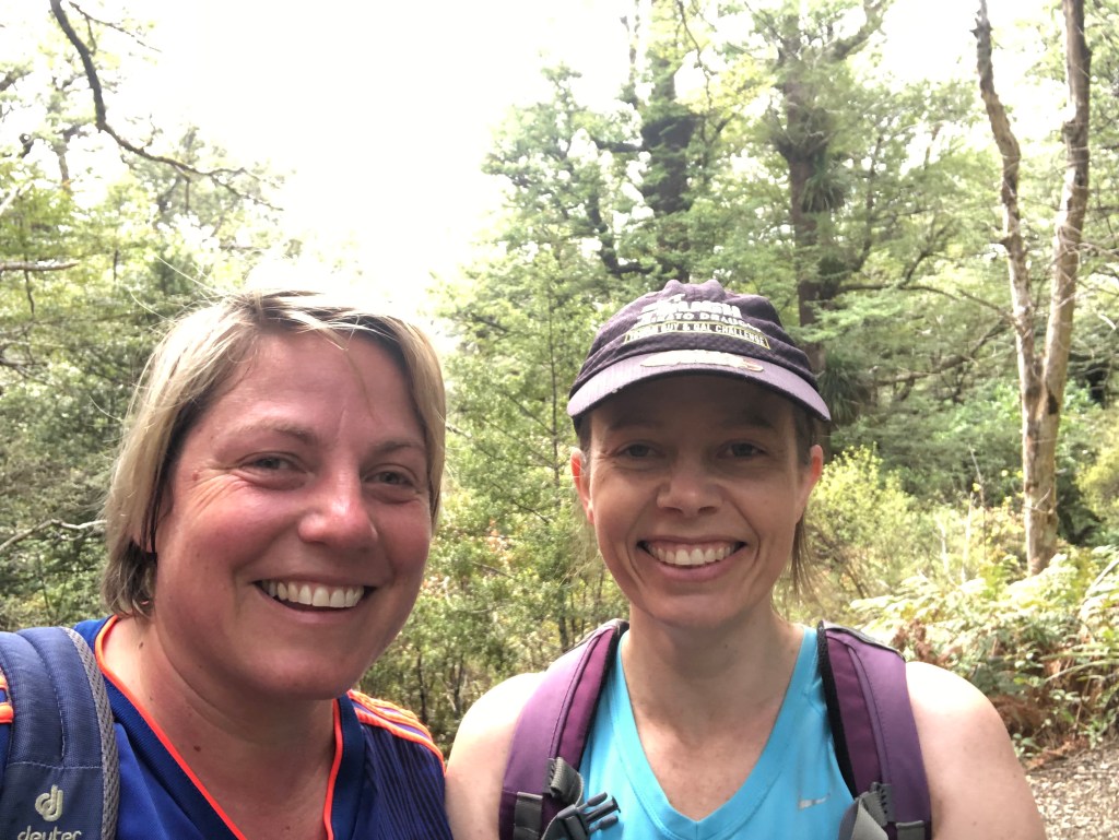 Der gut angelegte Wanderweg, hier noch relativ weit unten am Berg.Es geht höher hinauf, die Bäume werden kleiner 🙂Paula und ich bei ungefähr Halbzeit – ich wie immer schon völlig durchgeschwitzt.Das Ziel dieses Hikes, die Sunrise Hut. Hier kann man übernachten und dann frühmorgens den Sonnenaufgang anschauen. Für uns war es nur ein halbstündiger Aufenthalt für unseren selbst mitgebrachten Lunch (bewirtete Hütten wie bei uns gibt es hier nicht).Die Aussicht von dort Richtung Tal.Die Aussicht zur anderen Seite Richtung Berge.Leider zogen dann Wolken auf, so dass wir den Weg zum Sattel auf einen anderen Tag verschieben mussten.