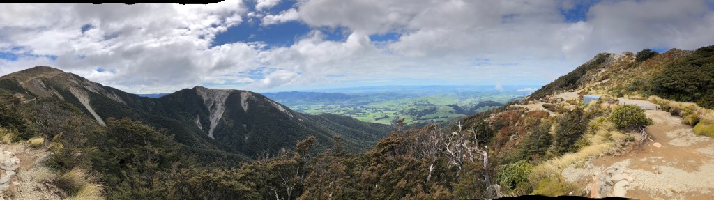 Denkmal am Lookout.Ausblick von oben zurück Richtung Wellington…… und in die andere Richtung, Richtung Hawke’s Bay, wo das Wetter deutlich besser war.