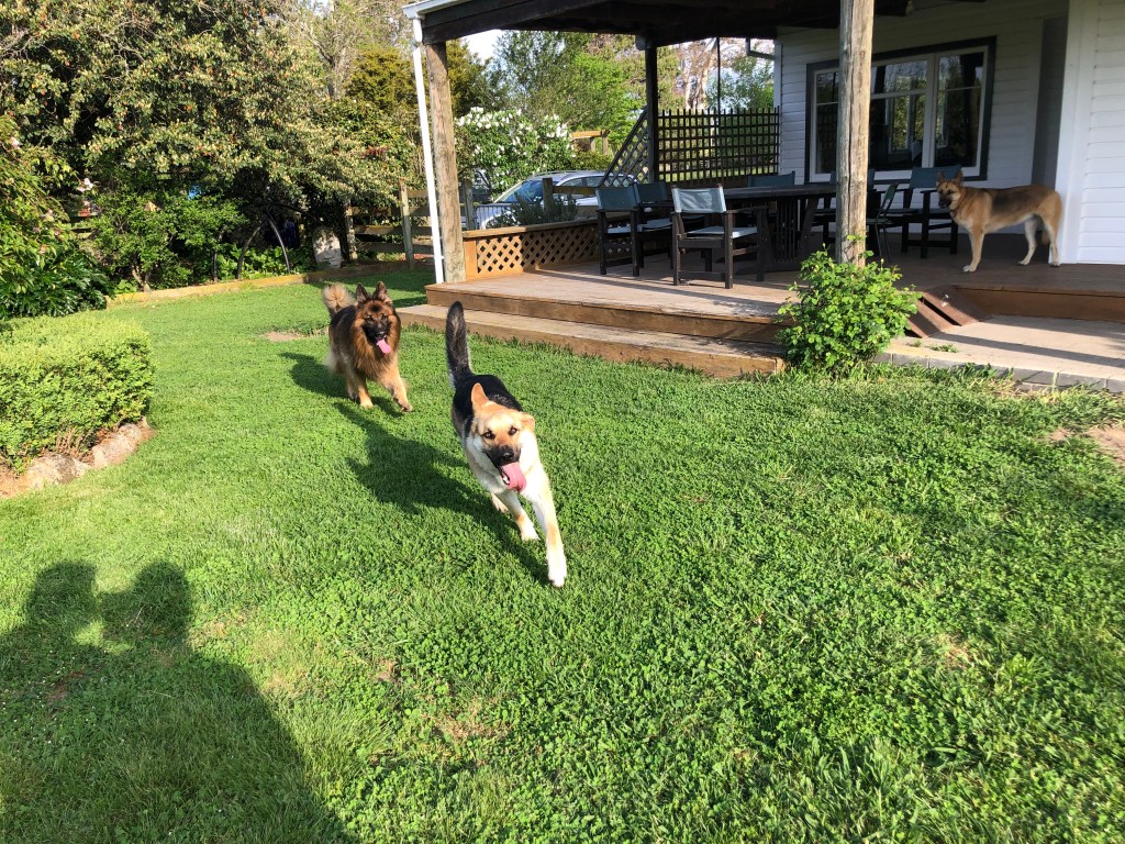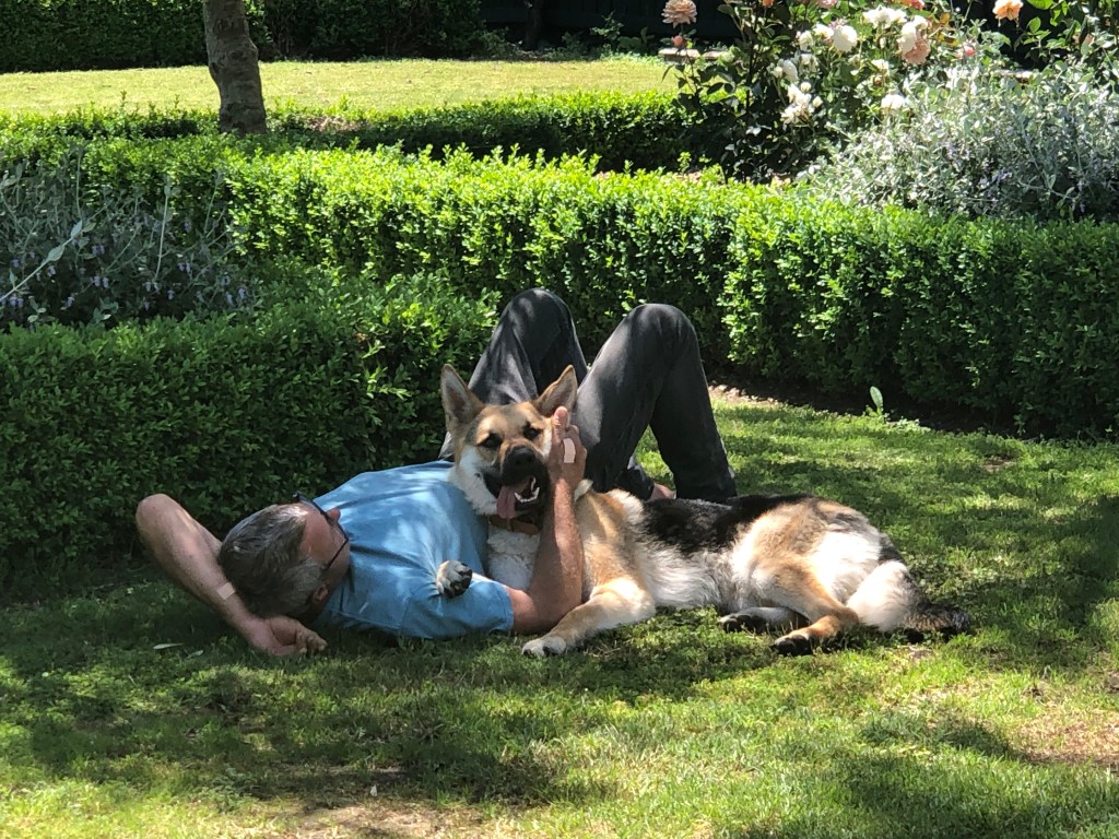 Jetzt kann Harvey seine relative Freiheit genießen und in Haus und Riesengarten umherstreifen so viel er will. Bisher klappt das sehr gut, mal sehen wie lange…