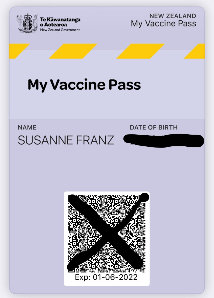 Mein neuseeländischer Covid-Pass, jetzt gültig bis 01.06.22.