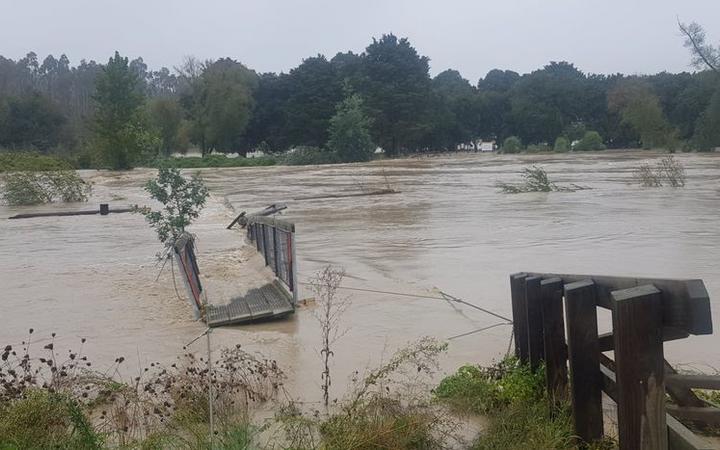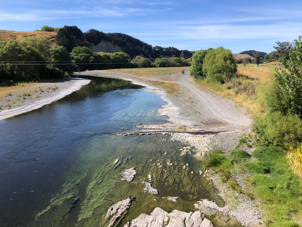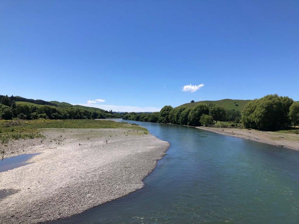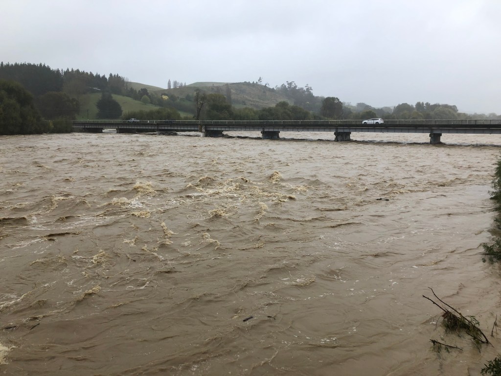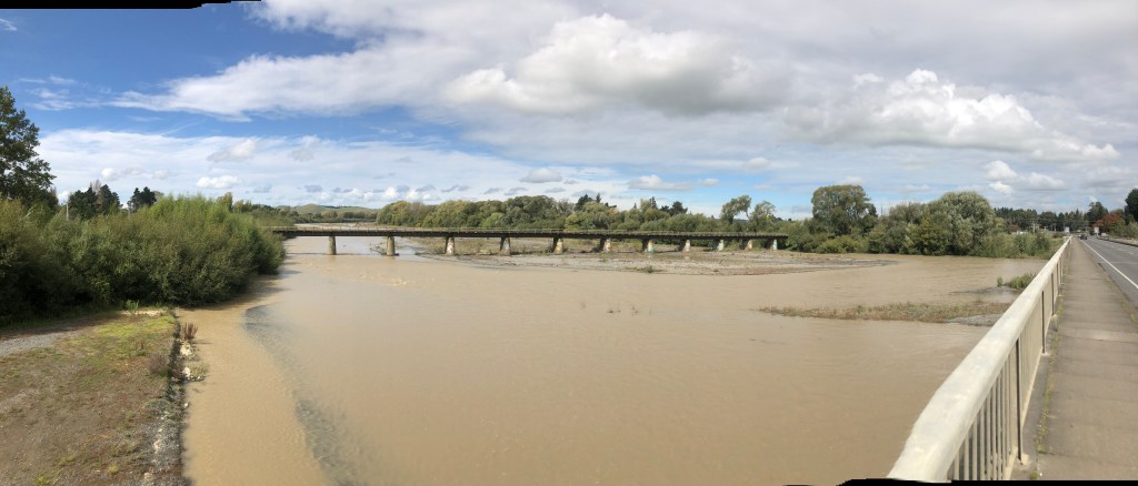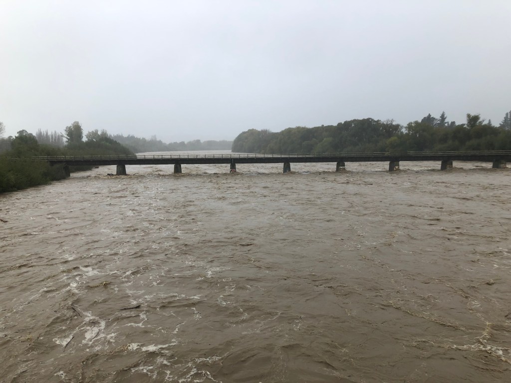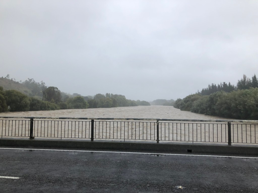 Braun und größer als normal – der Waipawa River.