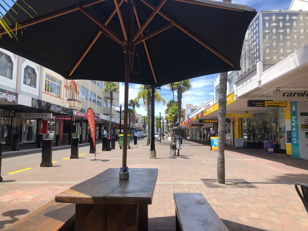 Ladenzeile in Napier am frühen Nachmittag in der Vorweihnachtszeit – das würde es in München (ohne Lockdown) nicht geben!