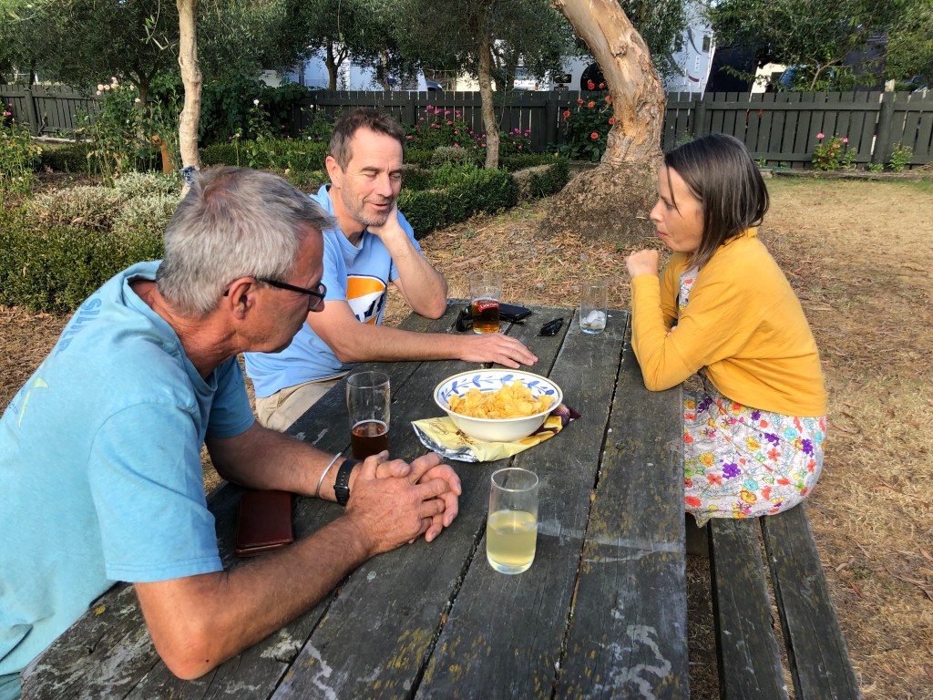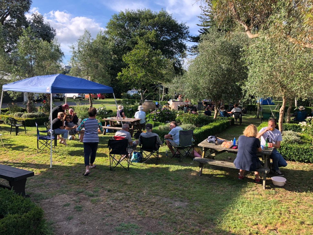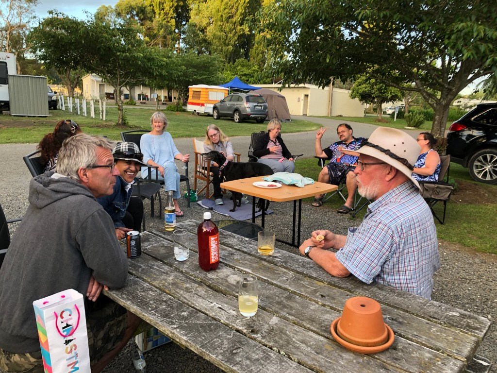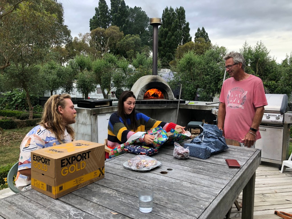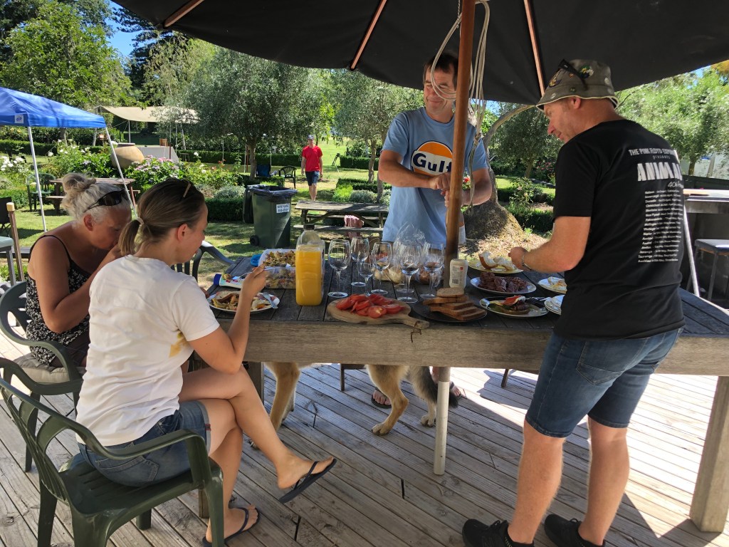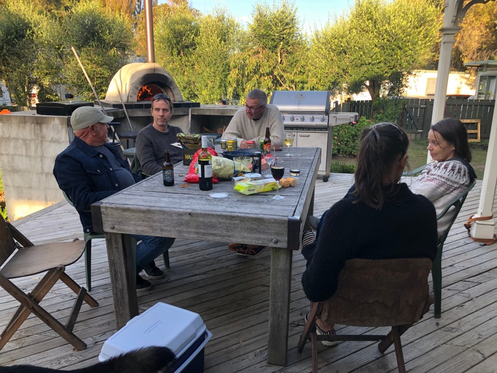 Auf dem Campingplatz war es vor Weihnachten super-ruhig! Wahrscheinlich waren alle Leute mit Vorbereitungen beschäftigt, oder sie hatten Angst vor einem Corona-Ausbruch, nachdem die Aucklandänder aus dem Lockdown raus sind, und wollten erstmal abwarten. Wir genossen die ruhige Zeit (wir wussten ja dank der vielen Buchungen, dass das ab Weihnachten anders wird), so konnten wir zum Beispiel wiedermal ein paar Freunde für Freitagabend einladen: