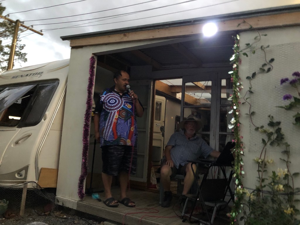 Paddy, Debs, Lindsay, Helen, zwei Camper, Lucy und John am Anfang des Abends, noch wurde sich unterhalten…… doch bald startete John die Karaoke-Veranstaltung 🙂Und bald versuchte sich fast jeder an einem Song, mal mehr mal weniger treffsicher mit den Tönen… aber Spaß machte es so oder so.