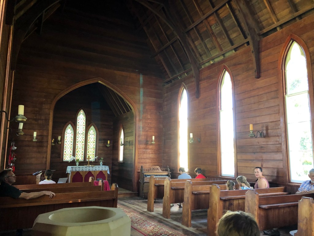 In der Woche vor Weihnachten lud Andrew uns ein, mit Aileen, ihm und seiner Tochter zu einem privaten Weihnachtsgottesdienst und anschließendem Umtrunk auf ein Gut namens Chapelwick in Porongahau zu kommen. Er kannte den Besitzer durch seine Tochter, die für ihn arbeitet, und er hatte in dem Gutshaus selbst bei Renovierungsarbeiten geholfen. Schon die Fahrt dorthin war superschön! Und das für neuseeländische Verhältnisse alte Haus mit Riesengrundstück mit Meerblick und eigener kleinen Kirche war sehr sehenswert! Hier ein paar Eindrücke von diesem Tag: