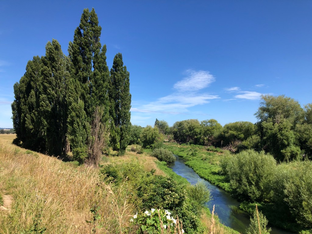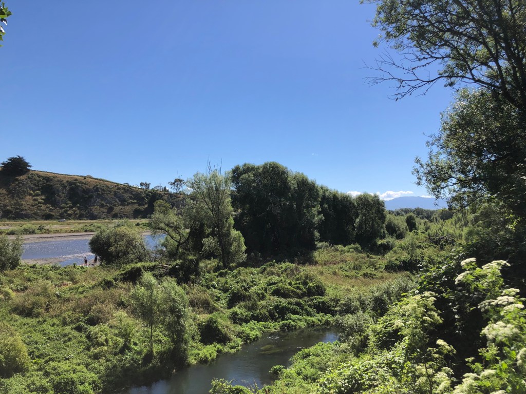 Außerdem war ich bei schönem Wetter ein paarmal mit dem Rad unterwegs, hier auf einer Runde durch die „Nachbarschaft“, das heißt zuerst zum Tukituki River und dann auf dem neuen Radweg am Fluss entlang bis der trail endet und auf Nebenstraßen zurück. Hier ein paar Eindrücke: