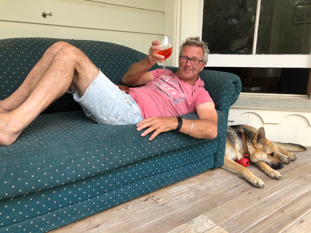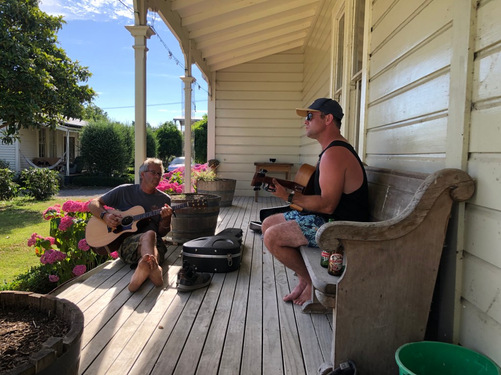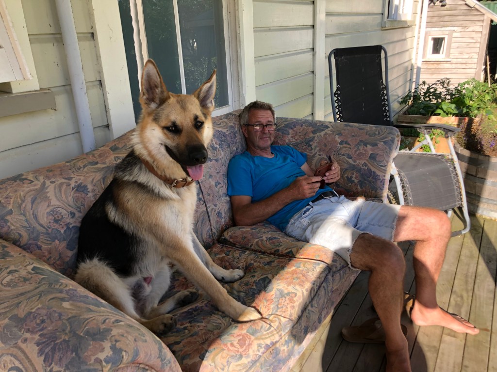 Hier noch ein Abschiedsfoto von meinen beiden Männern beim Chillen auf der Veranda: