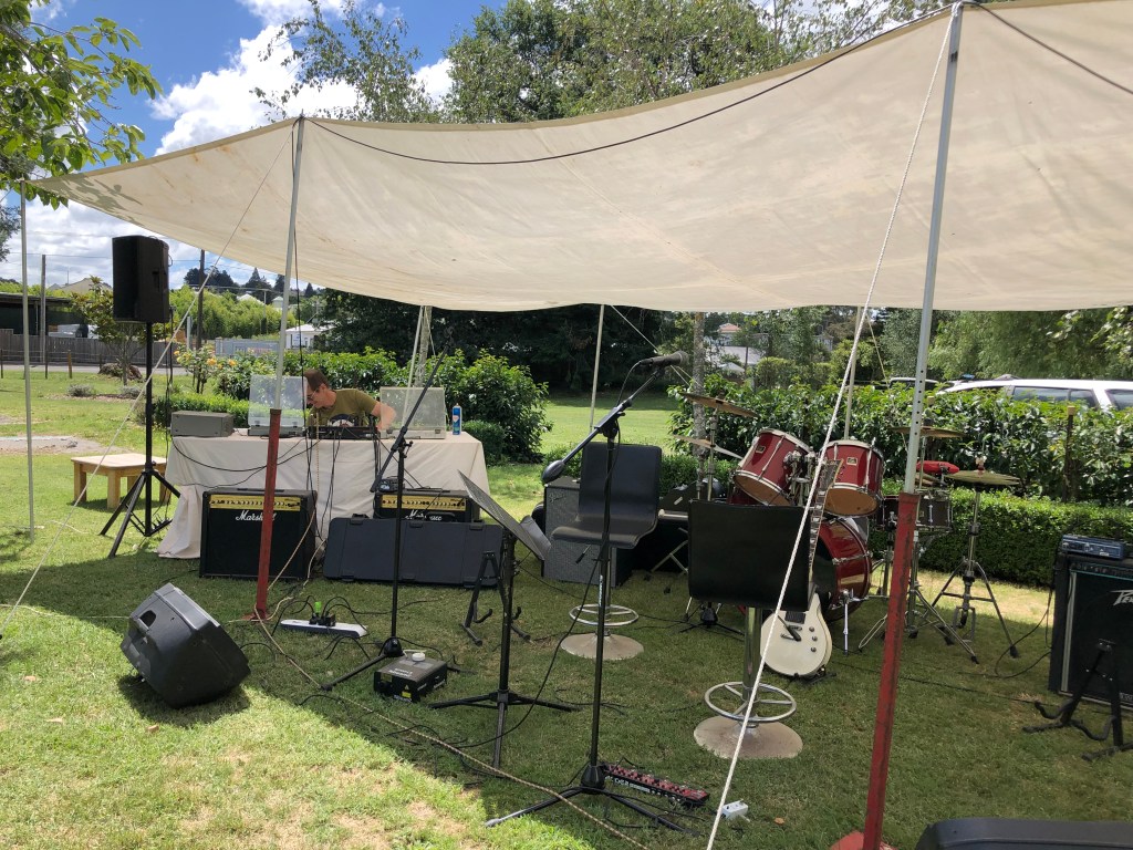Das folgende Wochenende spielte Paddy’s Band in Waipukurau auf dem „Green Patch“, um für die Krebsforschung Geld zu sammeln und gleichzeitig die Leute auf ihrem Shoppingtrip zu unterhalten.