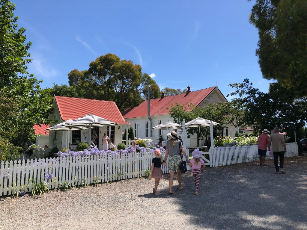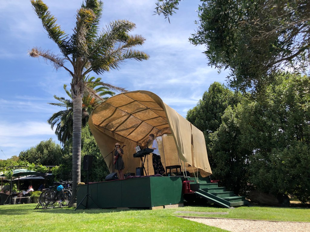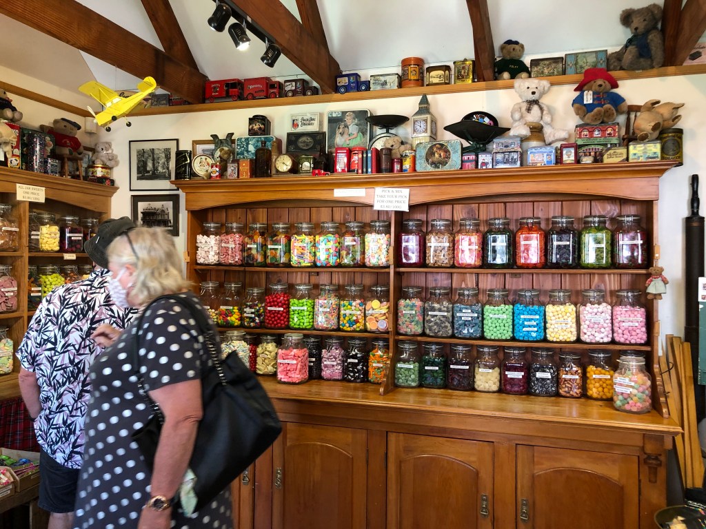 Birdswood – ein beliebtes Ausflugsziel in der Nähe von Hastings.Mit kleiner Kunstgalerie, deren Produkte man natürlich kaufen konnte……und einem Süßigkeitenladen aus früheren Zeiten…… der innen so aussah. Man konnte sich aus allem aussuchen, was man wollte und mixen und zahlte dann nach Gewicht. So lernte ich ein paar Süßigkeiten aus Paddy’s Jugendzeiten kennen (ich hoffe allerdings, dass sie nicht wirklich so alt waren…).Dann ging es durch wunderschöne Landschaft weiter nach Clifton, an der Bergkette um den Te Mata Peak vorbei.Im Café Hygge saßen wir an Tischen vor romantischer Meereskulisse.Paddy’s Schwester Aileen mit Partner Andrew.Paddy und ich.Live Musik von zwei jungen Mädels – etwas zu psychodelic für meinen Geschmack, aber sehr gechillt.Bevor wir uns wieder auf den Heimweg machten, gab es noch einen letzten Blick auf den Ozean.