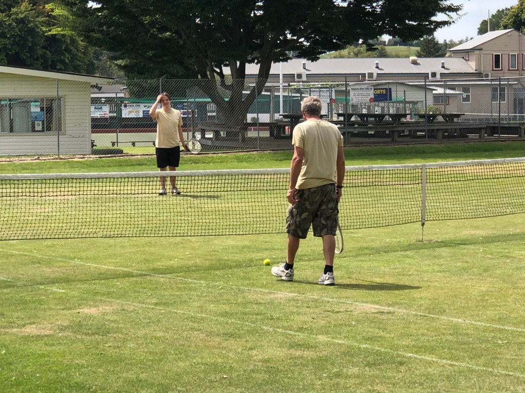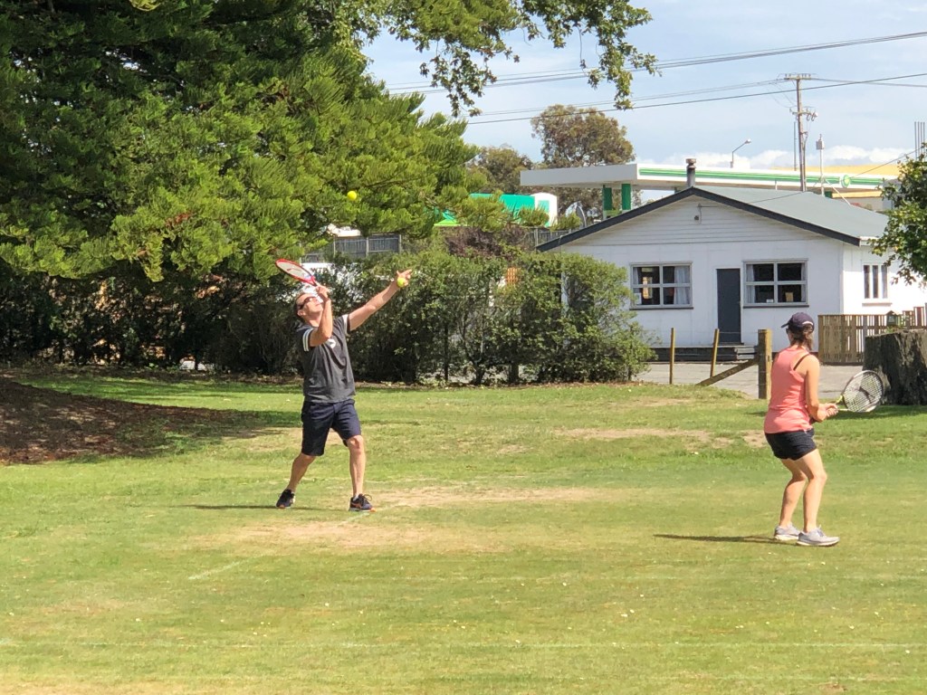 Doch bevor die RSE workers Anfang März einzogen, stand am letzten Februarwochenende noch das „Tennis-Wochenende“ an, an dem im benachbarten Tennisclub ein Veteranen-Turnier stattfindet und der ganze Campingplatz voll mit Tennisspielern aus ganz Neuseeland ist. Normalerweise gibt es jedes Jahr am Samstag eine Party mit Live-Musik von Paddy’s Band im Garten, aber da Omikron gerade durchs Land raste und die Infektionszahlen mit jedem Tag höher wurden, verzichteten wir auf die Party. Die machten die Tennisleute aber auch ohne uns! Wir gesellten uns ein bisschen dazu, seilten uns aber relativ früh wieder ab – schließlich mussten wir fit sein am nächsten Morgen, um die Überreste zu entsorgen! Nachdem am Montag früh auch die letzten Tennisspieler ausgecheckt hatten, ging es ans Großreinemachen – alle cabins und Unterkünfte mussten geputzt werden (natürlich zusätzlich zum Toilet Block)!!! Zum Glück half Paddy’s Schwester Aileen mit, und trotzdem waren wir den ganzen Tag beschäftigt!