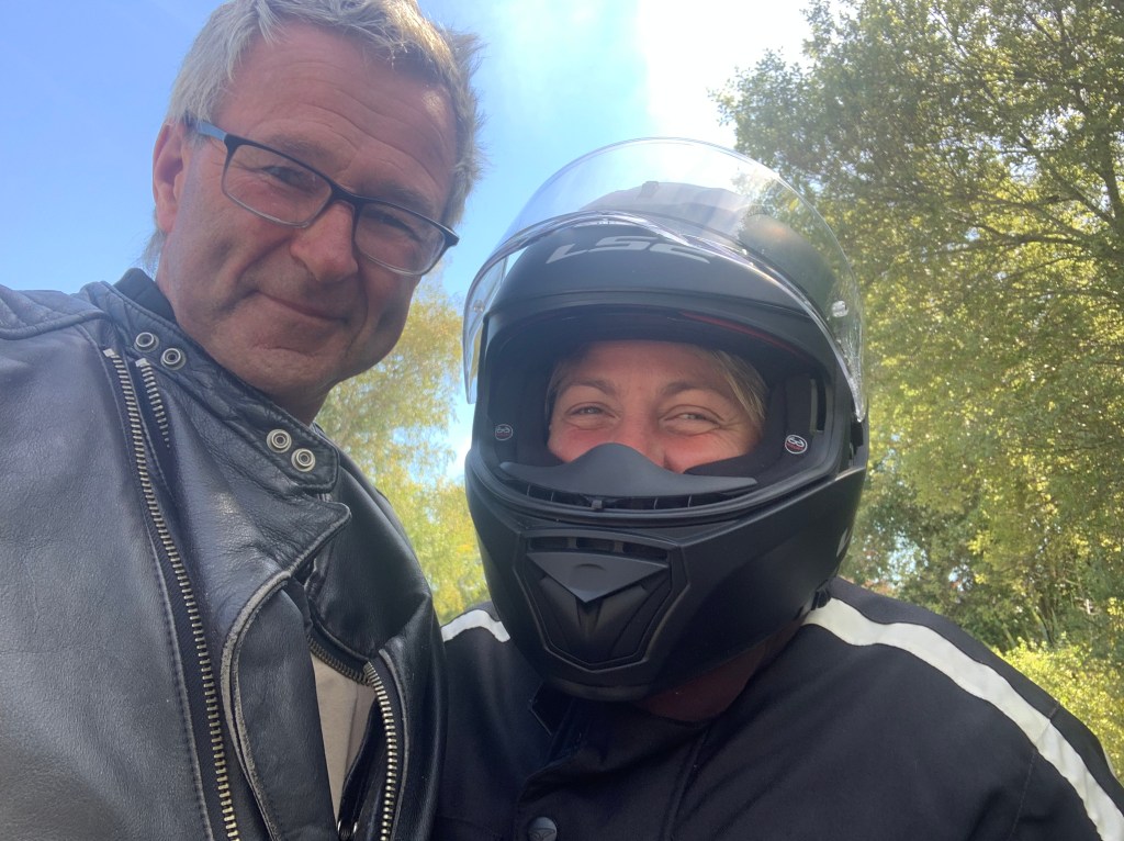 Wie steht mir die Harley? 🙂Die beiden Motorbiker.Paddy genehmigt sich einen Lamb Pie.