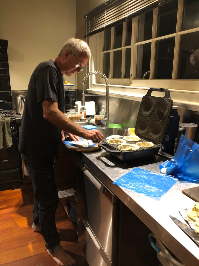 Neben dem Arbeiten gibt es aber auch noch andere Dinge im Leben, zum Beispiel mit Freunden feiern oder einfach nur etwas Leckeres essen, was wir gerne und häufig tun, wie hier mit selbst gemachten Pies bei uns in der Küche: