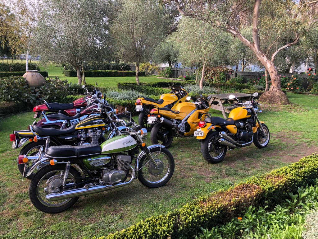 Und was macht man sonst noch so an Ostern? Man bewundert seine Motorräder :-). Paddy hatte seine komplette Motorrad-Flotte vor dem Haus geparkt – echt eine beeindruckende Sammlung!