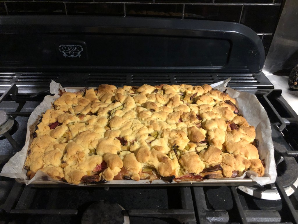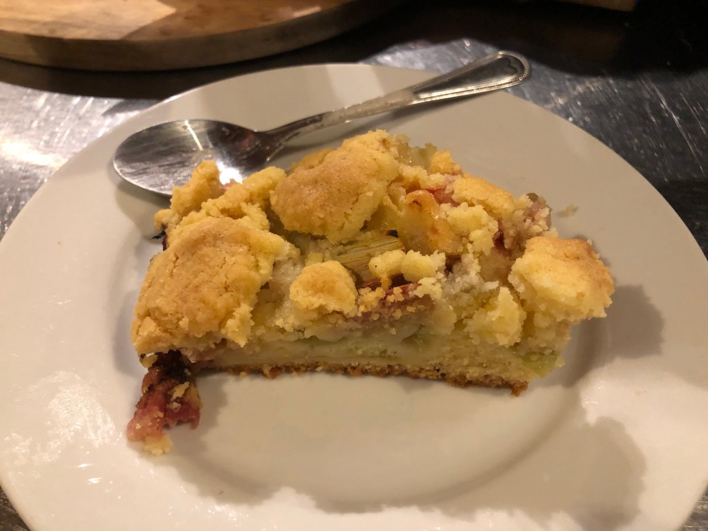 Ende April ist mein Geburtstag, und dies war der erste Geburtstag in Neuseeland. Es war schon sehr merkwürdig, das erste Mal ohne meine (deutschen) Freunde zu feiern, aber feiern wollte ich natürlich schon! Deshalb luden wir Paddy’s Freunde (inzwischen auch meine) zu einer Party bei uns ein. Am Abend vorher backten wir fleißig Kuchen – einen Rhabarber-Streuselkuchen (danke für das Rezept, Bettina!) und einen Apfelkuchen, yummy!!! Hier der sehr sehr leckere Rhabarber-Streuselkuchen: