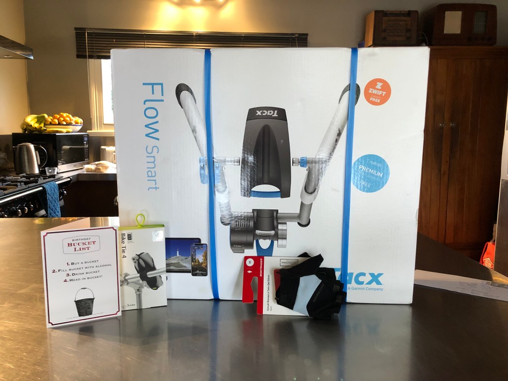 Meine Geschenke: zwei Tage Napier mit leckerem Dinner und Übernachtung, einen coolen Fahrradtrainer (für kalte, nasse Wintertage), Fahrradhandschuhe und ein Handyhalter fürs Rad.