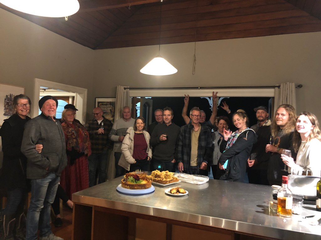 Am 6. April waren wir zu Roy’s Feier seines 65. Geburtstags eingeladen, ein wichtiger Geburtstag, weil das das Renteneintrittsalter in Neuseeland ist – wobei die meisten Leute weiter arbeiten, das ist anders als bei uns, hier wollen die meisten länger arbeiten. Und auch Roy hat nicht die Absicht, jetzt in Rente zu gehen.