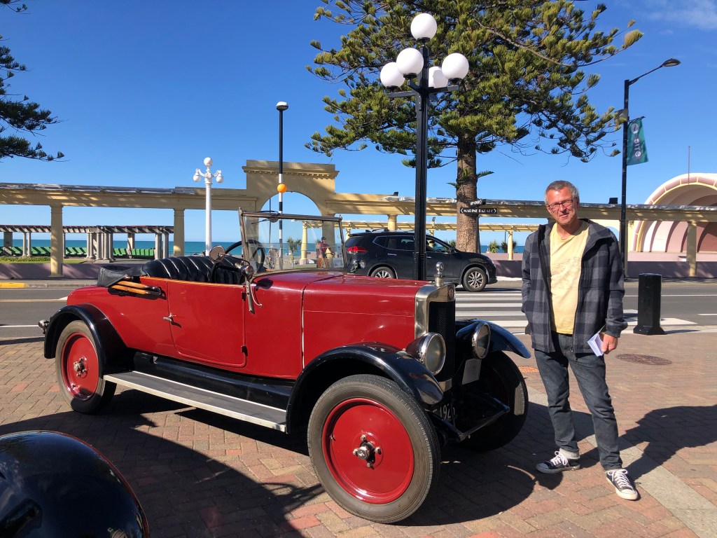 So ein Ausflug mit Oldtimern ist eine beliebte Sonntags-Aktivität in Neuseeland. Überhaupt lieben Neuseeländer alles, was einen Motor hat und nutzen es am liebsten quasi ständig und überall (sogar in Flüssen und am Strand): Autos, Trucks, Motorbikes, Quatbikes, Boote, Flugzeuge, E-Bikes, Modellautos, … Das ist ein großer Unterschied zwischen Deutschland und Neuseeland – hier schert sich niemand so wirklich um die Menge an Abgasen, die er produziert, oder was er sonst der Natur antut. Und während man in Deutschland oft relativ weit vom Strand entfernt parken und den Rest zu Fuß gehen muss, um die Dünenlandschaft nicht zu zerstören, fährt man hier mit allem was Räder hat, auf dem Strand herum – eins der wenigen Dinge, die ich hier nicht so toll finde…