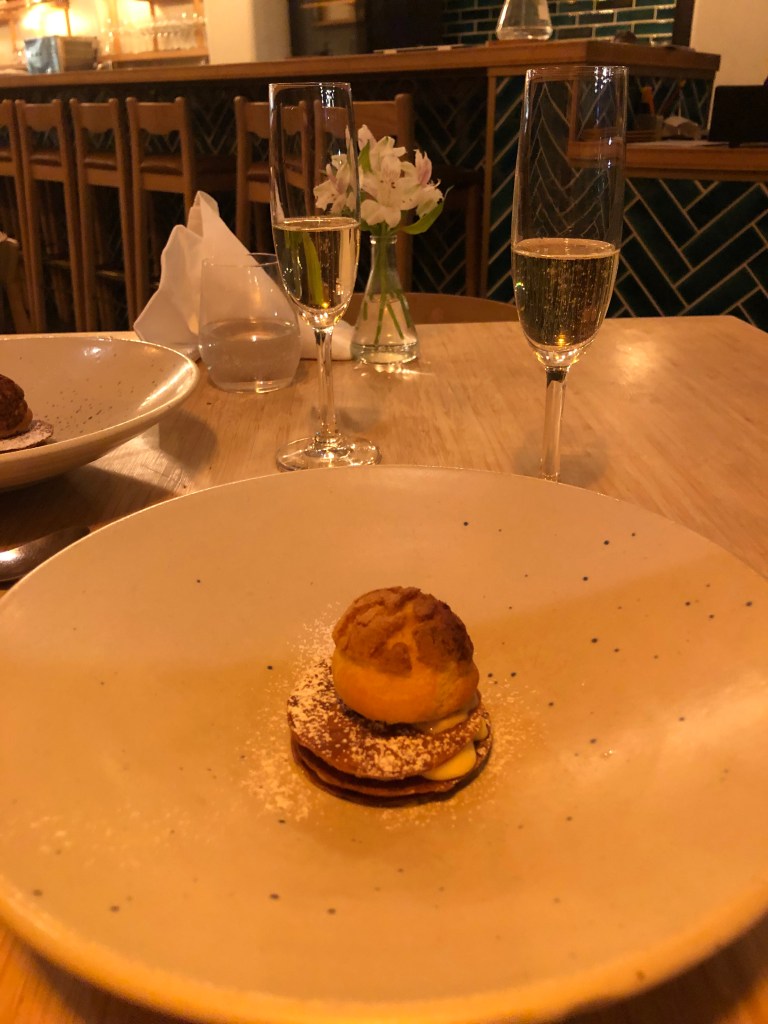 Brunnen in Napier.Paddy mit Oldtimer an der Marine Parade – Napier gilt als Art Deco Stadt.Spaziergang zum Bluff Hill…… um den Sonnenuntergang anzuschauen – sehr romantisch 🙂Der Start in den Abend mit Aperol Spritz.Zwei der sechs Gänge unseres Menus: Links Fisch mit Noisette-Butter, rechts das Dessert.Zurück in unserem echt netten AirB&B wartete nicht nur ein sehr bequemes Bett auf uns, sondern auch Katze „Oscar“, die die halbe Nacht mit uns verbrachte.