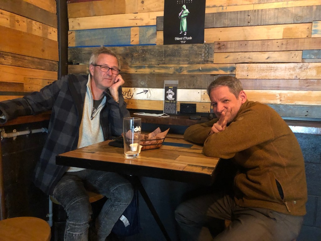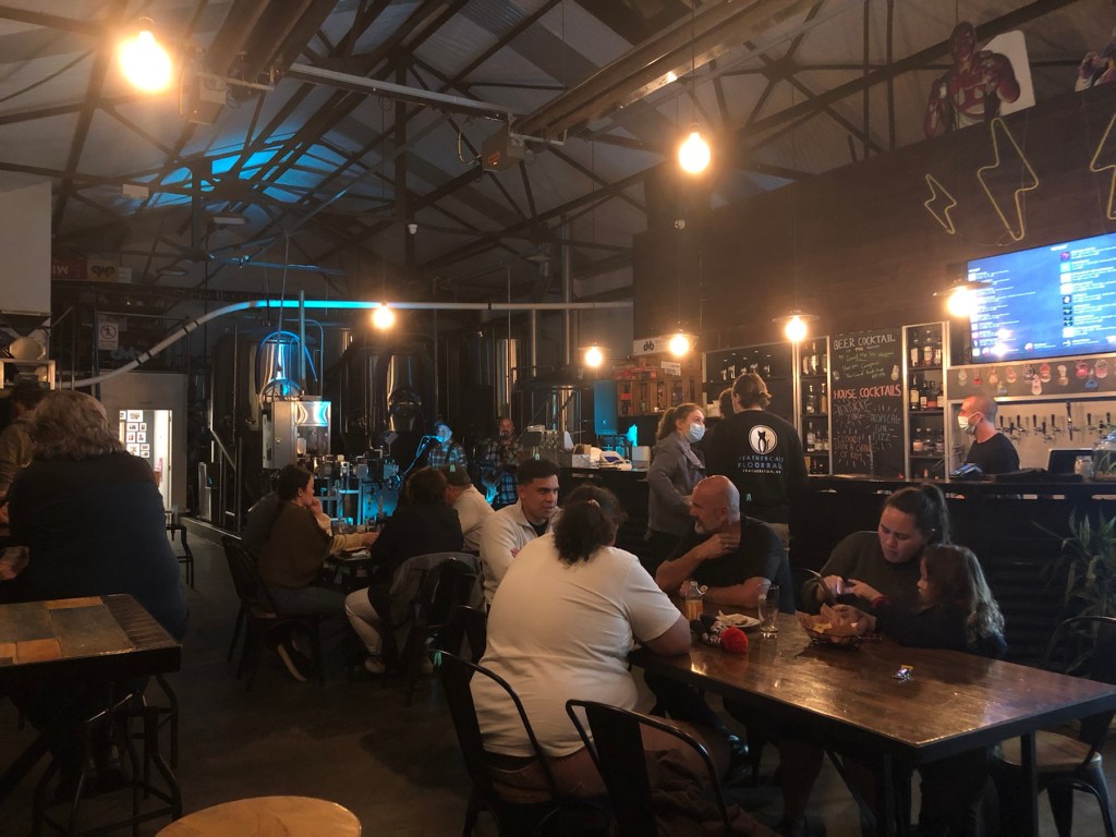 dvb – double vision brewery in Wellington. Paddy und Tibor genießen Bier und Musik.Zwei der über zehn craft beers.