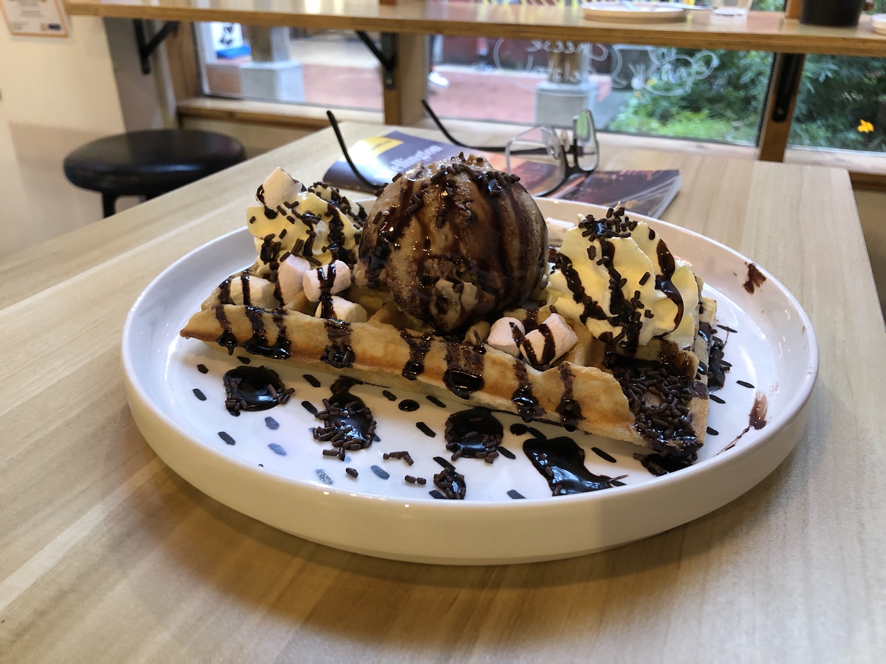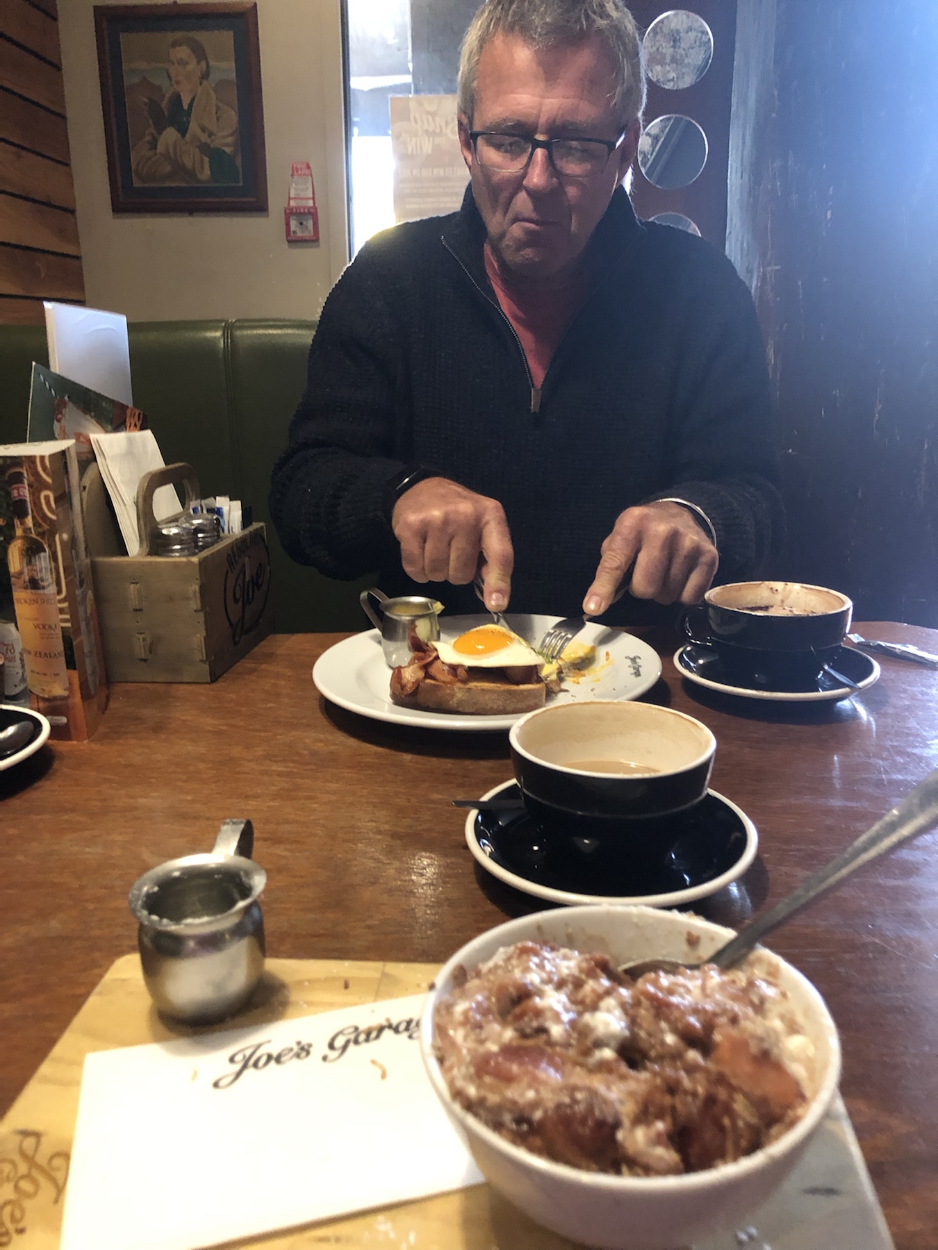 Am nächsten Morgen brauchten wir als erstes ein ordentliches Frühstück mit Kaffee, bevor wir unsere Sightseeingtour starten konnten, und so machten wir uns auf den Weg in die Wellingtoner Innenstadt und fanden „Joe‘s Garage“ für unsere Stärkung: