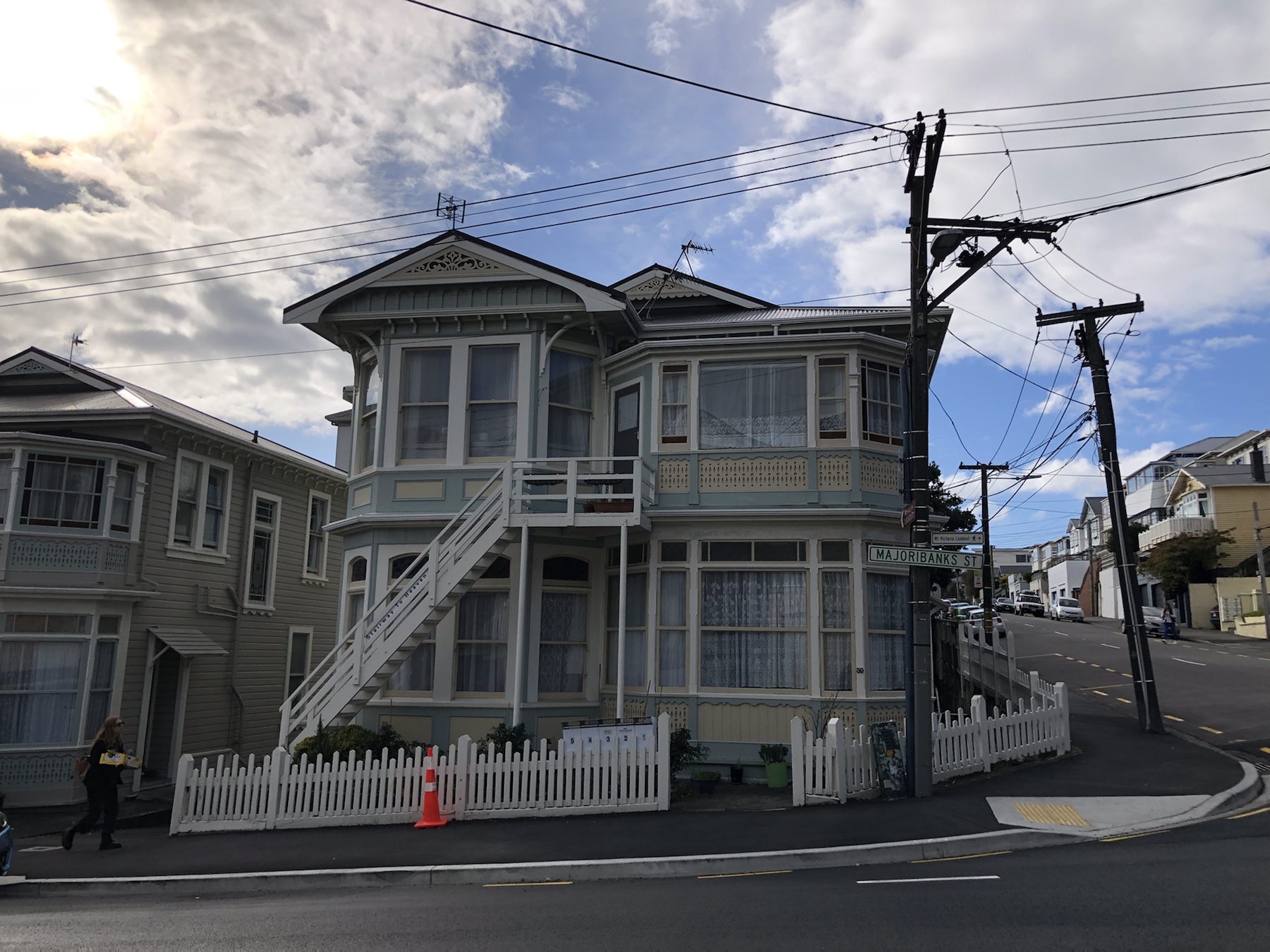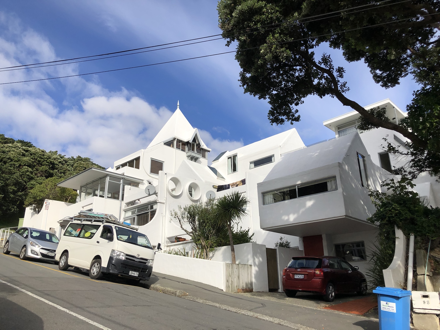 Blick aus dem Parkhaus durch die Stadt hinunter zum Wasser.KunstTibor als das „I“ in Wellington – ein bisschen Touri-Quatsch muss sein 😜Verrückte gibts hier auch! Ein Schwimmer im kalten Wasser des Hafenbeckens 😵Meine Meinung dazuBlick von der Bayfront in die Stadt.Blick aufs Wasser und gegenüberliegendes Ufer.Außergewöhnliches Haus von einer Seite…… und von der anderen Seite.Nette kleine Stadtvilla…… mit interessantem Detail 😊ArchitekturAufstieg zum Mount Victoria Lookout.Die Aussicht vom Lookout.Wir drei hoch über Wellington 😊Filmkamera auf Stativbeinen.😂Junge Straßenmusikanten in der Cuba Street.Auf dem Rückweg durch die Stadt.Leckere Stärkung mit Waffeln und Eis….… macht Tibor und mich glücklich