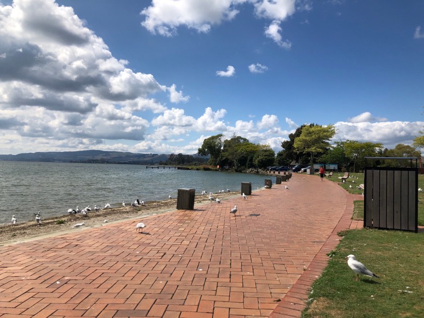 Am Sonntag schlief ich aus und machte mich erst recht spät auf den Weg nach Rotorua, aber es waren auch nur 30 Kilometer, so dass ich schon um 10.30 Uhr dort ankam. Da das normalerweise zu früh ist, um im Hostel einzuchecken, begab ich mich erstmal ein wenig auf Stadtbesichtigung: