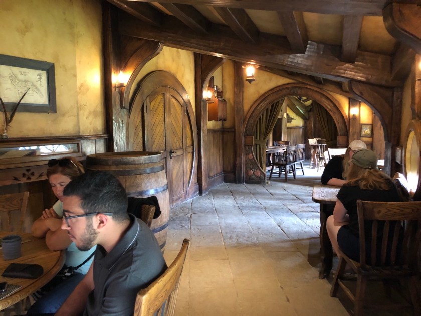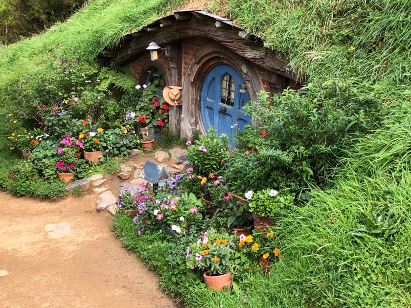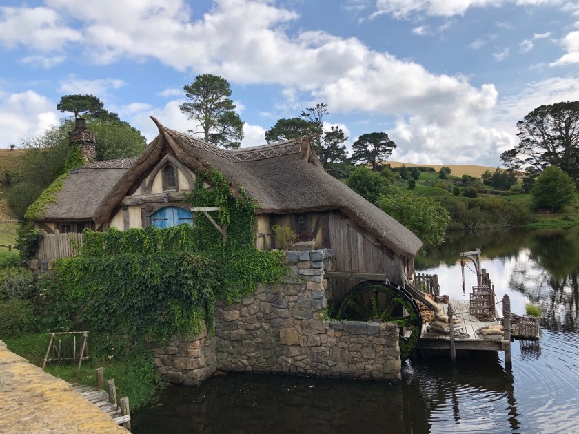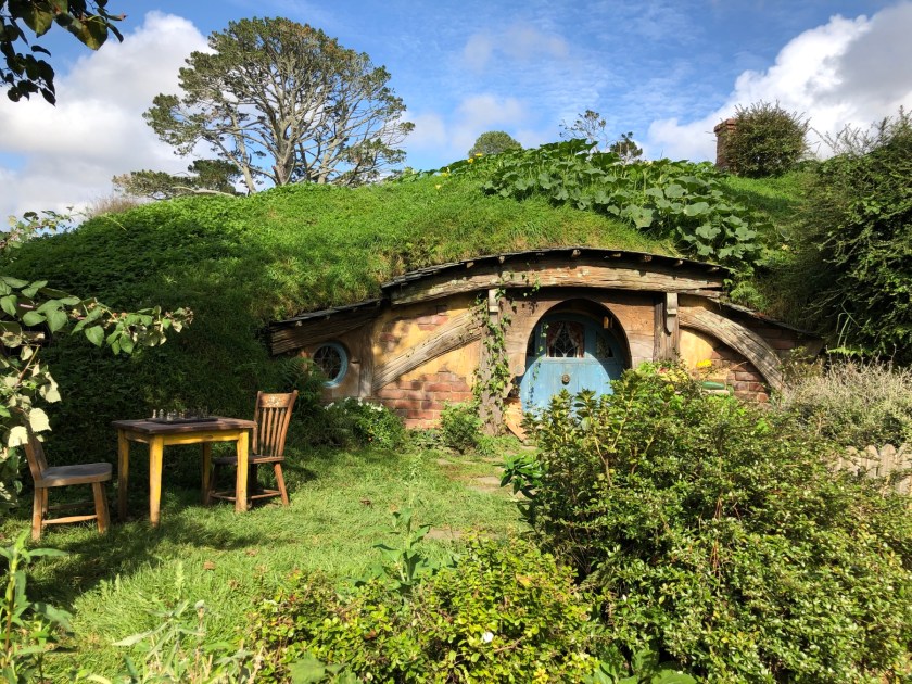 Für Dienstag hatte ich eine Bustour zum Hobbiton Movieset gebucht – das zweite echt touristische Ding (nach der Doubtful Sound Cruise), das ich hier in Neuseeland mache. Und das ist perfekt durchorganisiert: jede Busladung Touristen bekommt gleich am Eingang einen Guide, der dann die komplette Gruppe durch das große Gelände führt, interessante Dinge über die Entstehung des Sets und Begebenheiten beim Filmen erzählt und ansonsten versucht, die Gruppe zusammen zu halten. Es gibt einen festen Ablauf, damit sich die vielen Gruppen nicht in die Quere kommen, und zum Schluss gibt es ein Freigetränk im „Green Dragon“, so dass die meisten Besucher nach eineinhalb Stunden Hobbiton zufrieden verlassen, nachdem ihr Guide sie wieder in den richtigen Bus gesetzt hat. Das klingt jetzt vielleicht etwas negativ, da sowas nicht so meine Welt ist, das Filmset selbst ist aber tatsächlich sehenswert!