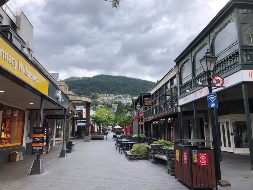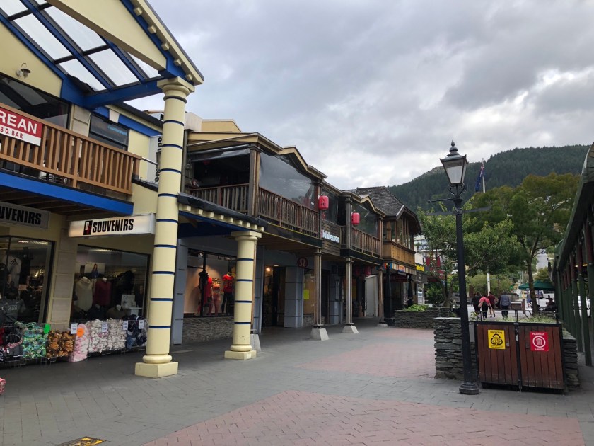Am Mittwoch war mal wieder Regen angesagt, so dass ich beschloss, nicht nochmal zu hiken oder Mountainbiken zu gehen (das war meine andere Option), sondern mir Queenstown ein bisschen anzuschauen und mich ansonsten auszuruhen, da am Donnerstag eine anstrengende Radetappe ansteht. Queenstown ist komplett auf Tourismus und v.a. Adrenalin-Junkies ausgerichtet, die sich von irgendwelchen Höhen hinabstürzen wollen (mit und ohne Fallschirm, dafür mit Seil an den Beinen) oder anderswie ihren Kick bekommen wollen. Deshalb besteht ein große Teil der Stadt aus Hotels, Restaurants, Agenturen und Geschäften: