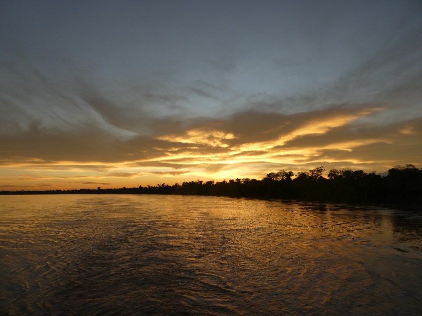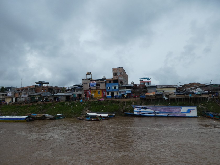 Nachts änderte sich das Wetter und wir wurden unsanft von einem Gewittersturm geweckt, der unsere Sachen inklusive Hängematten durchnässte, bevor die Regenplanen runtergelassen waren. Überhaupt war es überraschend kalt auf dem Boot, v.a. Nachts. Nachdem es in Yurimaguas so heiß gewesen war, war ich völlig überrascht davon, dass ich lange Sachen anziehen musste und trotzdem fror. Da half die Nässe natürlich nicht wirklich…