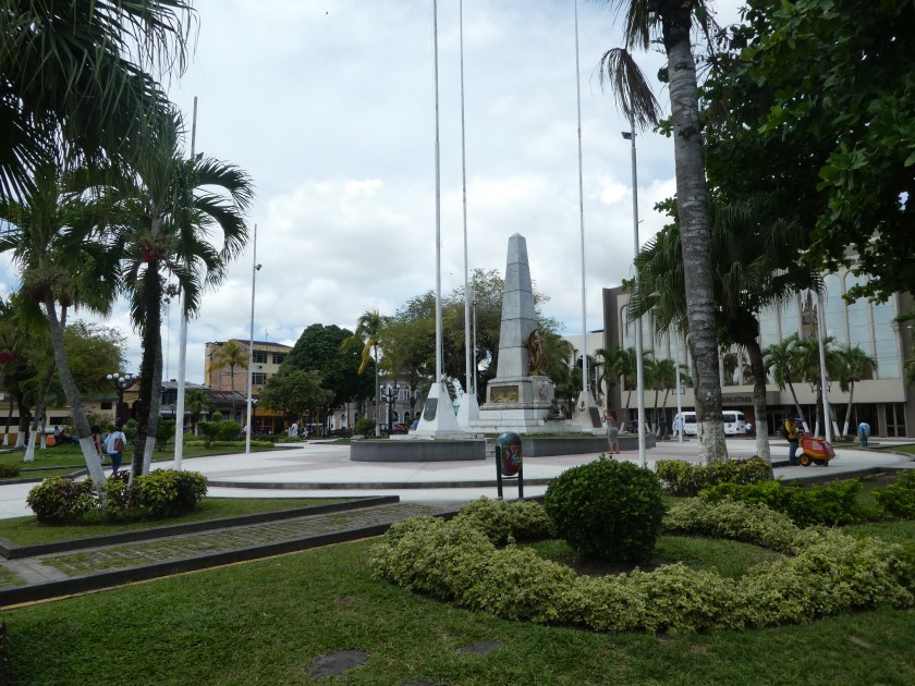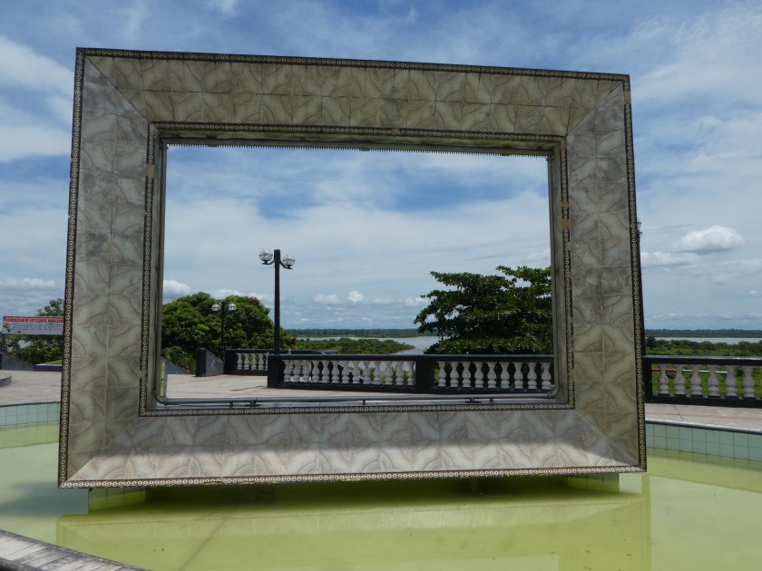 Freitag und Samstag schaute ich mir ausgiebig die Stadt an, unter anderem auch die einzige echte Sehenswürdigkeit, den Mercado Belén. Leider habe ich keine Fotos gemacht. Weil dort angeblich sehr viel gestohlen wird, wollte ich meine Kamera nicht mitnehmen. Deshalb müsst ihr mit einer Beschreibung vorlieb nehmen: der Markt ist riesig und es gibt alles, was man sich nur vorstellen kann: Obst, Gemüse, Fleisch, Klamotten, Haushaltssachen usw. Es gibt aber auch ungewöhnliches: Schlangen- oder Caimanköpfe, verbotenes Fleisch und Fisch, lebendige Dschungeltiere, alles Mögliche an Tinkturen und Getränken, verschiedene Baumrinden und und und. Sehr interessant, aber auch unglaublich schmutzig, und es stinkt ohne Ende, v.a. wo Fleisch verkauft wird. Nach Regen steht die (nicht geteerte) Straße unter Wasser und es ist schlammig, und man läuft durch jede Menge Müll und Abwasser – alles andere als appetitlich. Und zwischendrin wird fleißig Essen verkauft… Ich habe es dort ungefähr eine Stunde ausgehalten, dann musste ich da raus, der Gestank war einfach zu krass. Trotzdem ist der Markt definitiv einen Besuch wert.