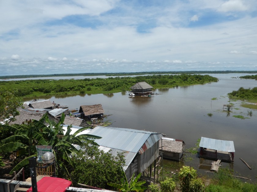 In Yurimaguas angekommen, wurde der Bus sofort von mindestens 20 Mototaxi-Fahrern bestürmt (im wahrsten Sinne des Wortes!), und ich nahm mir gleich eins zu meinem Hostal. Nach dem Einchecken nutzte ich das dazugehörige Restaurant und bekam eine riesige Portion Reis mit Fisch, ich hatte aber auch Riesenhunger! Hier ein erster Blick auf den Fluss (und das Armenviertel):