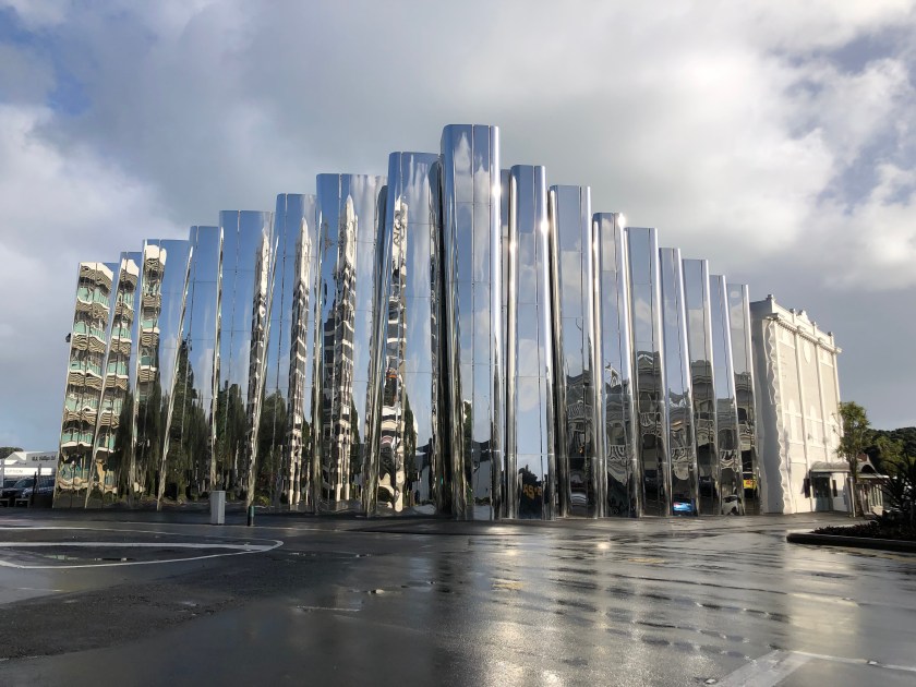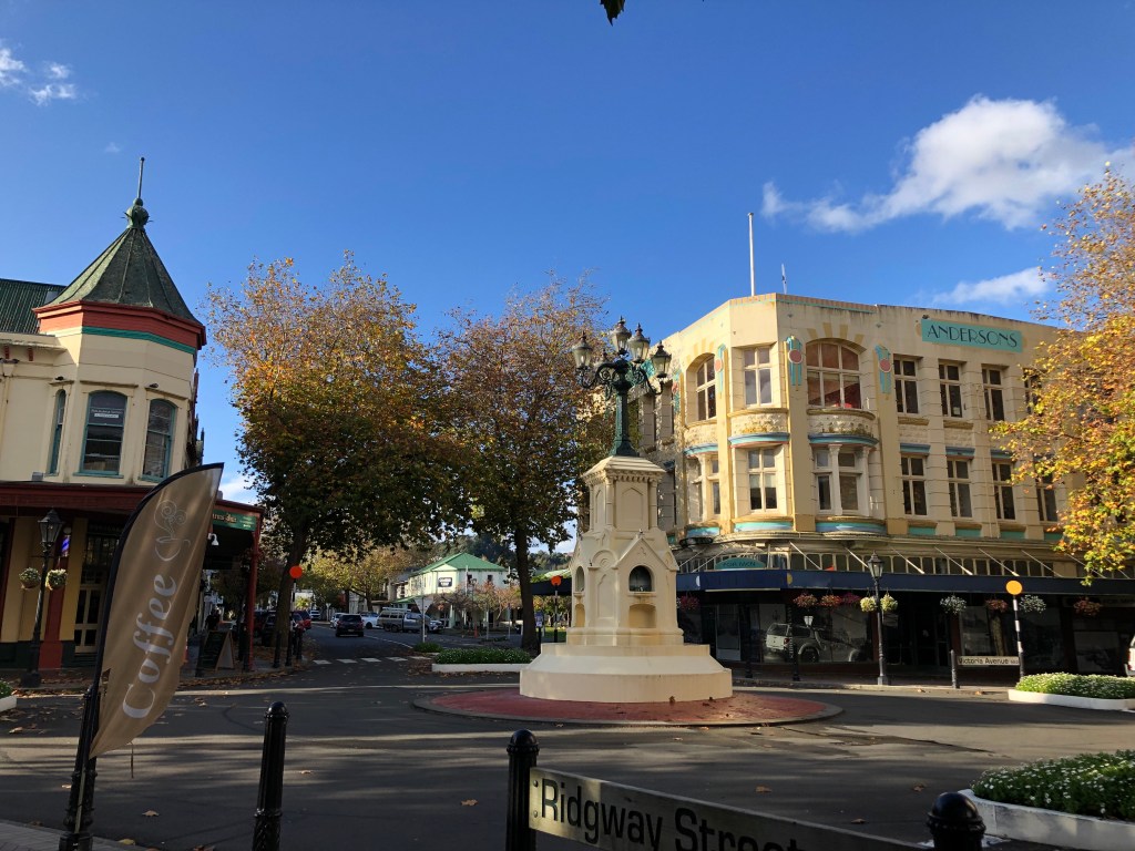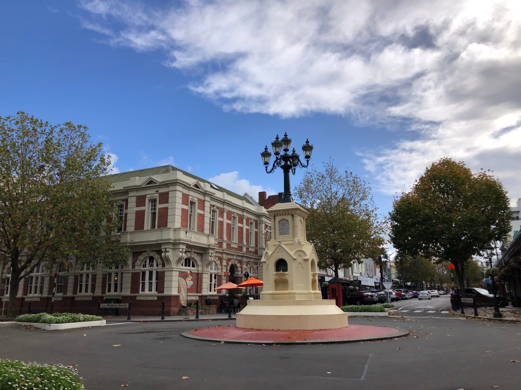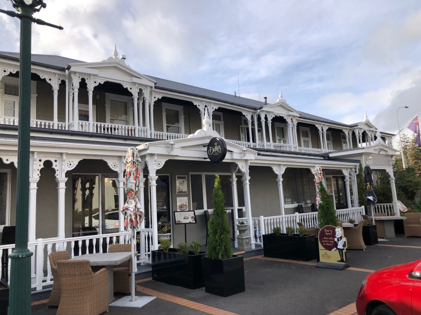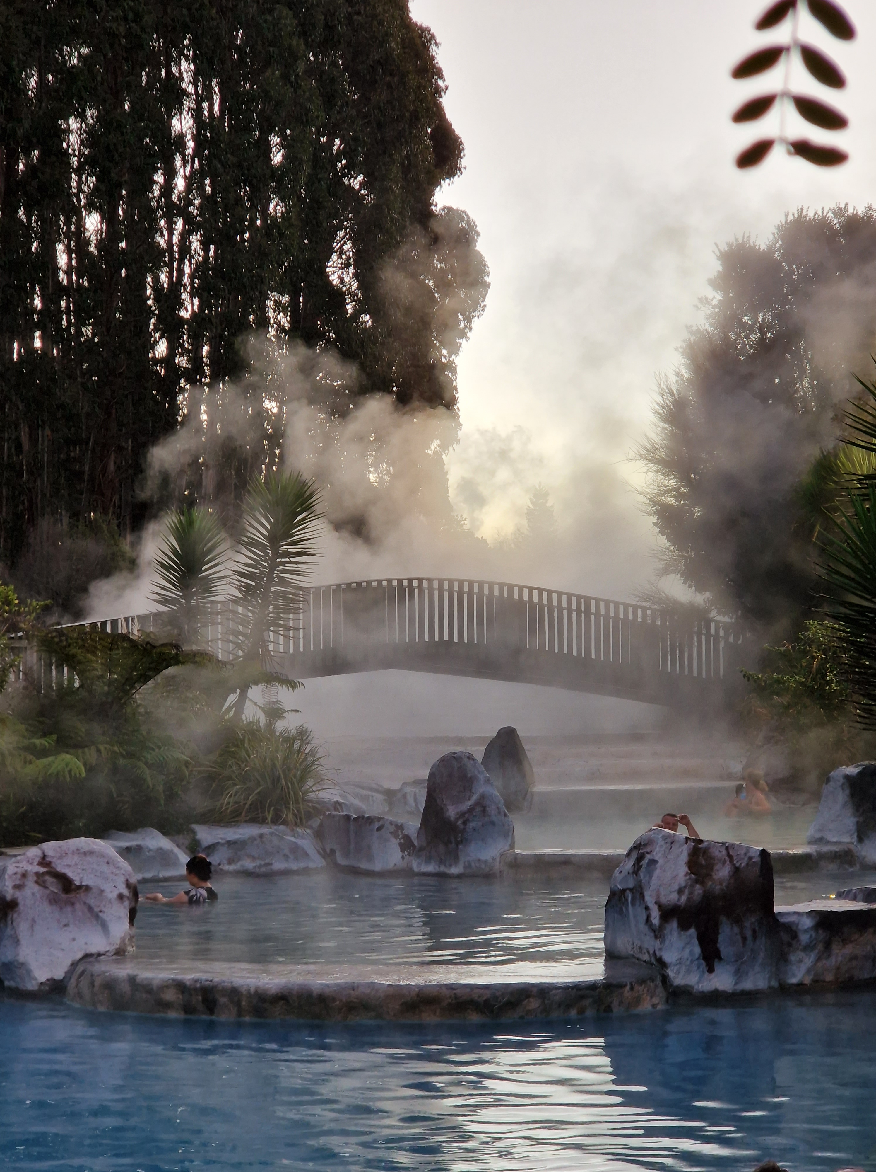 Wieder zurück in Rotorua begaben wir uns auf Stadtbesichtigungstour, diesmal bei Tageslicht. Wir hatten richtiges Aprilwetter mit fast allem, was das Wetter so zu bieten hat: Sonnenschein, Wolken, Regenguss, Sonne, Wind, … und alles in 5-minütigem Wechsel. Tibor war für alle Wetter gerüstet, ich hingegen wurde zwischendurch ordentlich nass. Aber Rotorua ist auch im Regen schön. Ich liebe dieses Städtchen, in dem es überall dampft und nach Schwefel riecht! Viele Bewohner machen sich die Vulkanaktivität zu nutze und heizen ihre Häuser oder ihr Wasser mit dem natürlichen Dampf. Manche kochen sogar im heißen Wasser draußen. Auch die Architektur ist sehenswert, allen voran das Rotorua Museum (das leider geschlossen war), das marokkanisch anmutende Blue Bath und die Tourist Information: