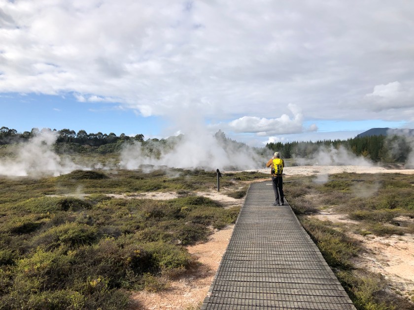 Heute war Abschied angesagt, während ich wieder zurück nach Waipawa fahren würde, würde Tibor mit seinem gebuchten Leihwagen weiter touren und sich den Norden der Nordinsel alleine anschauen. Doch bevor ich ihn zum Flughafen brachte, wo sein Leihwagen auf ihn wartete, hatten wir noch ein bisschen Zeit, die wir dazu nutzten, uns den Kuirau Park in der Stadtmitte anzuschauen, der mich schon bei meinem ersten Besuch in Rotorua vor 3 Jahren fasziniert hatte: