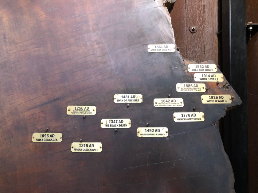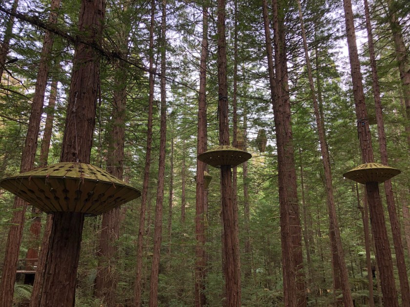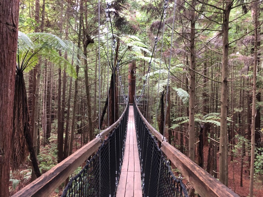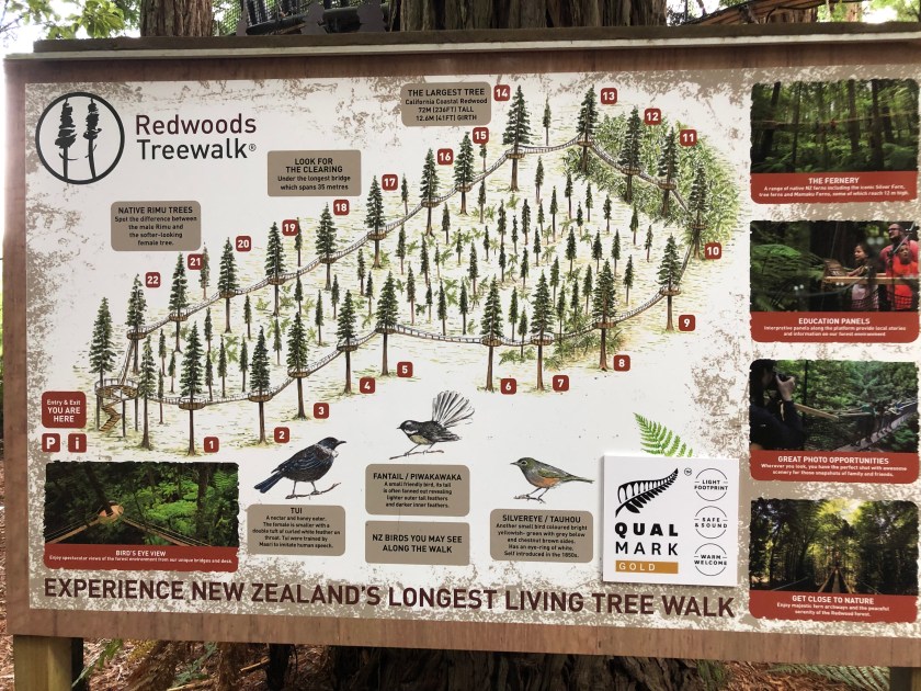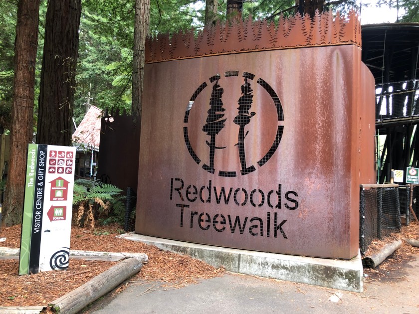 Das Wetter sollte heute allgemein wechselhaft werden, doch da der Tag zumindest trocken anfing, beschlossen wir, den Tree Walk im Redwood Forest zu machen, von dem uns Paddy vorgeschwärmt hatte. Hier ein paar Fotos von dem Tree Walk und den Baumriesen: