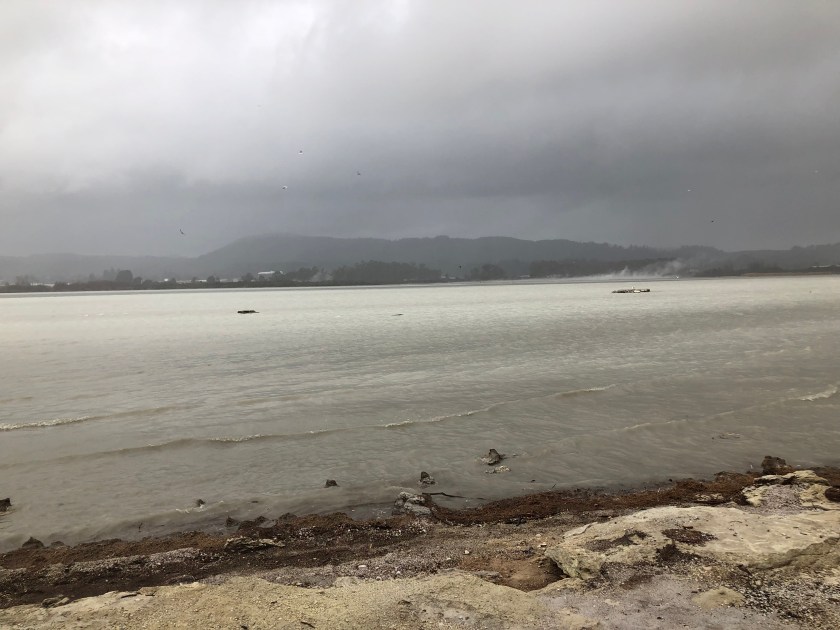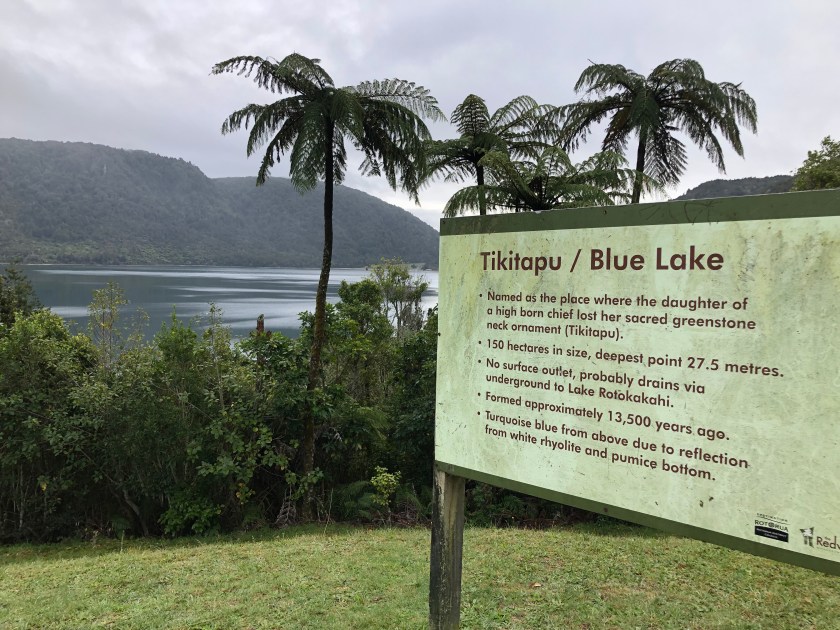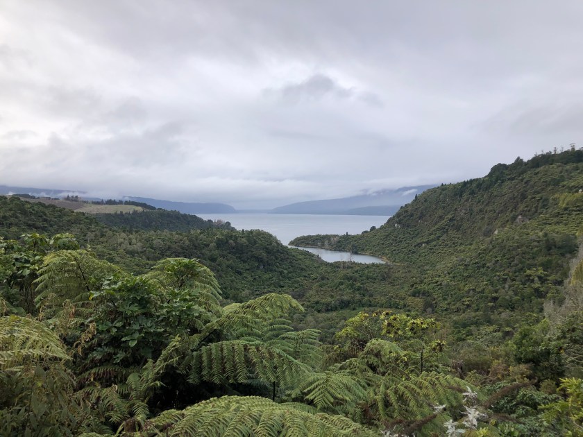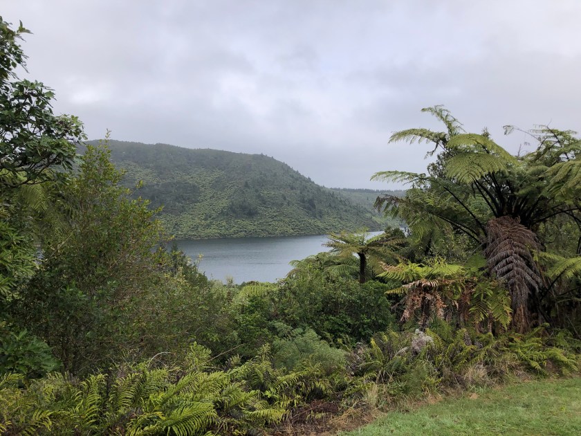 Danach fuhren wir zum Green and Blue Lake, dem Lake Tarawera und dem Aussichtspunkt, in der Hoffnung, den Mount Tarawera heute von der anderen Seite zu sehen, aber daraus wurde wegen tiefhängender Wolken und immer mal wieder Regen leider nichts. Auch die Fotos schauen ein bisschen dröge aus in diesem grauen Wetter: