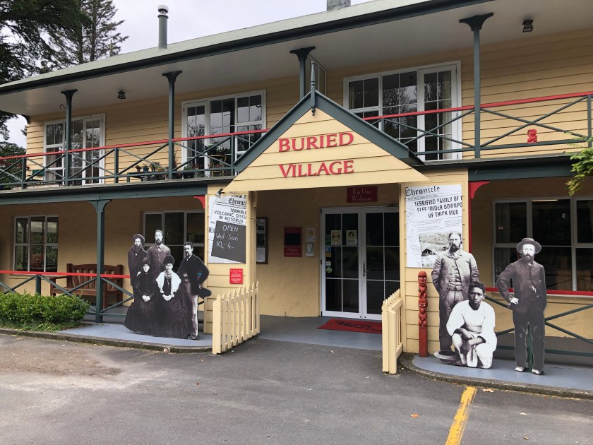 Auf dem Rückweg machten wir einen längeren Stop im Buried Village, einem Museum in Privatbesitz, das ganz dem Vulkanausbruch des Tarawera 1886 gewidmet ist, bei dem 2 Dörfer komplett und eines teilweise verschüttet wurden und 150 Menschen starben. Das Museum ist sehr informativ und bringt dem Besucher die Geschichte des Vulkanausbruchs mit persönlichen Erzählungen von Leuten, die es miterlebt hatten, nahe. Wen dies näher interessiert, findet mehr Infos auf der Homepage des Museums (https://www.buriedvillage.co.nz). Hier ein paar Eindrücke: