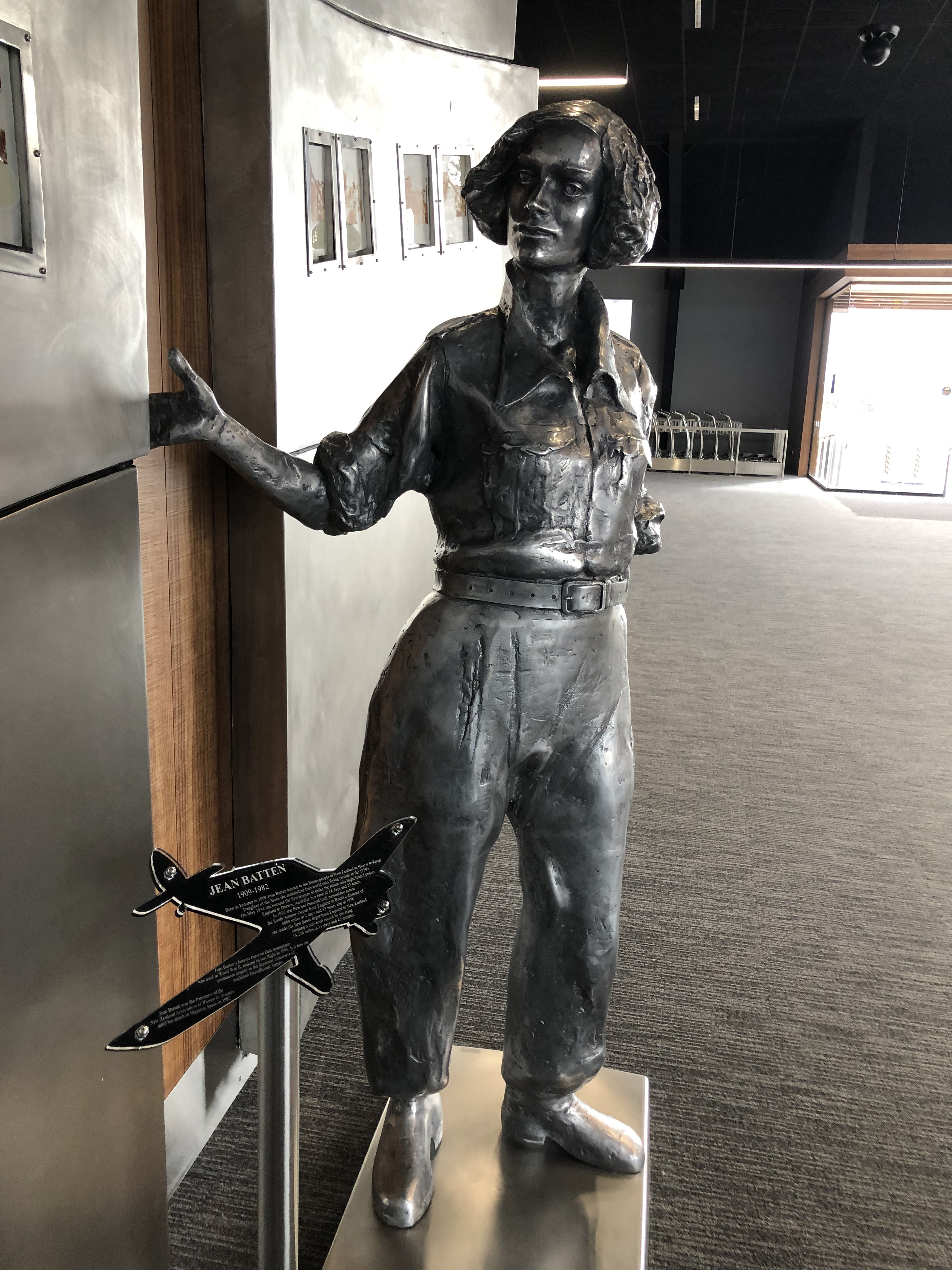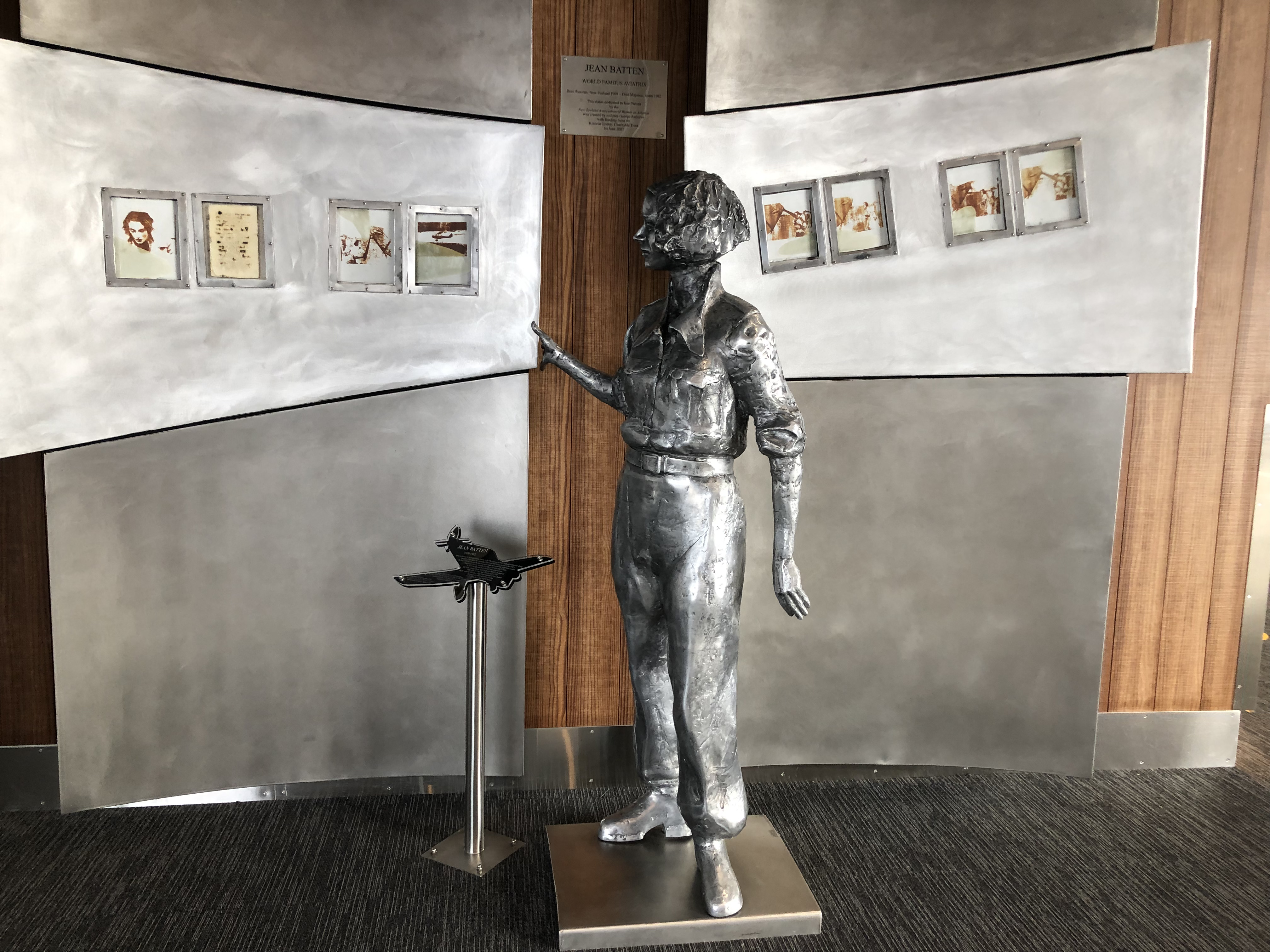 Dann wurde es aber doch langsam Zeit, sich auf den Weg zum Flughafen zu machen. Während Tibor die letzten Formalitäten am Schalter der Leihwagenfirma erledigte, hatte ich ein wenig Zeit, mir die Miniausstellung zu Jean Batten anzuschauen, der neuseeländischen Heldin der Lüfte: