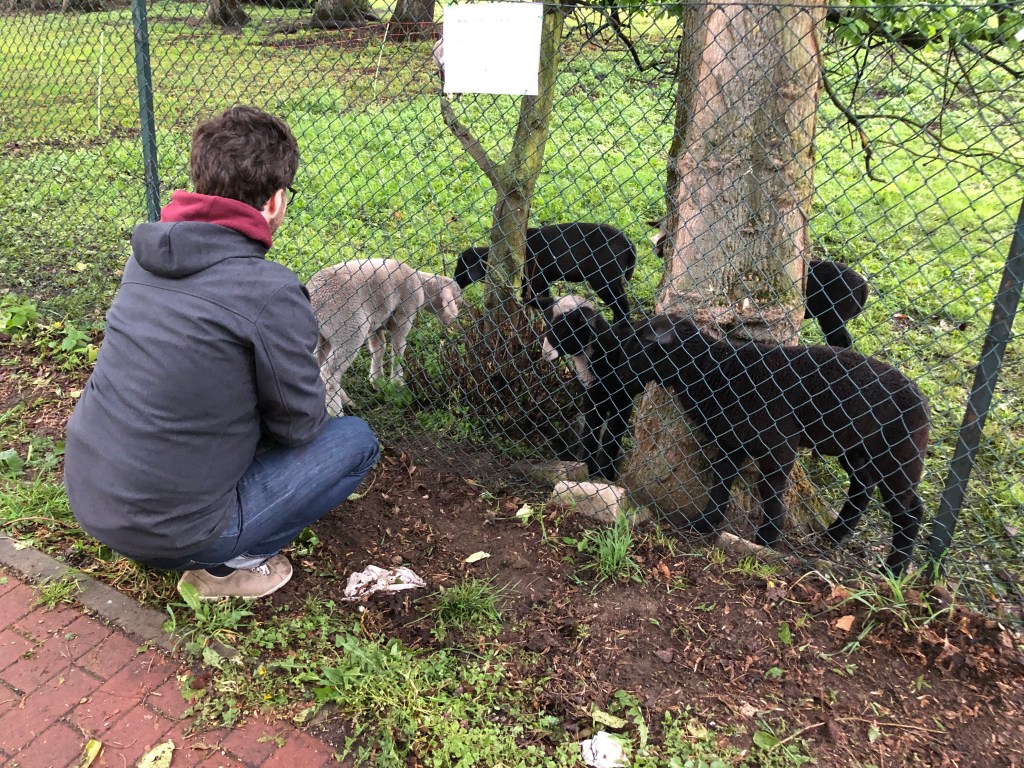 Nach dem langen Sitzen im Auto waren wir froh, dass Anne noch ein wenig spazieren gehen wollte, auch wenn das Wetter nicht das beste war und wir am Ende sogar richtig nass wurden. Wir trafen uns mit Anne’s Freund Chris und machten uns auf den Weg zu den Schafen, Chris‘ Lieblingsziel 🙂