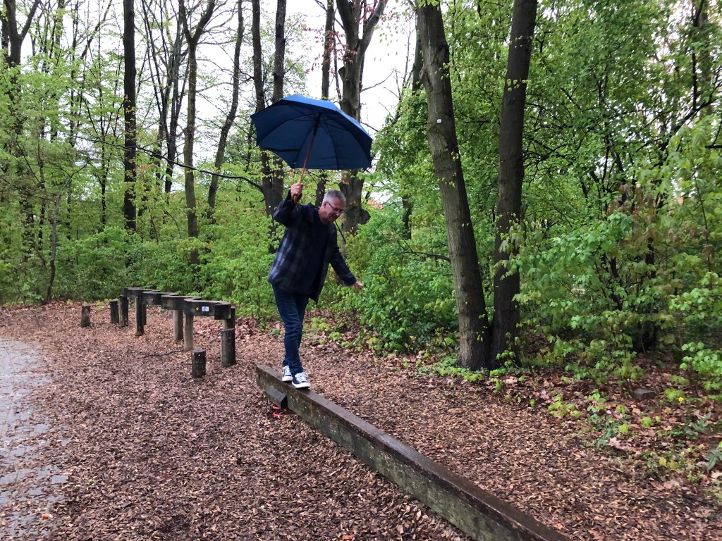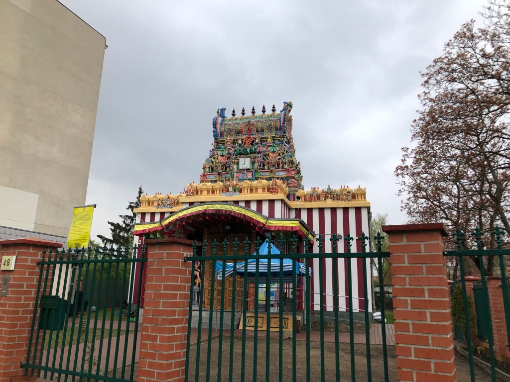 Anne’s Freund Chris mit den Lämmern.Paddy beim Balancieren auf dem nassen Balken – eine männliche Mary Poppins mit Regenschirm 😉Das Bürgeramt Neukölln-Britz in der Nähe von Anne’s Zuhause.Interessanter Hindu-Tempel.