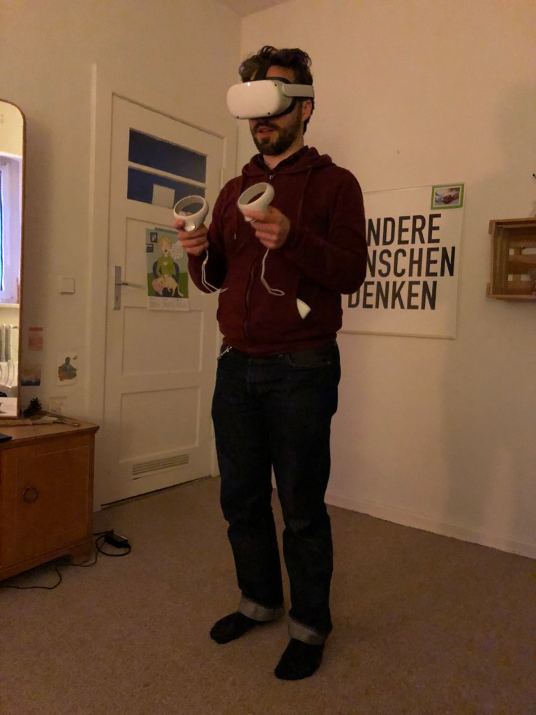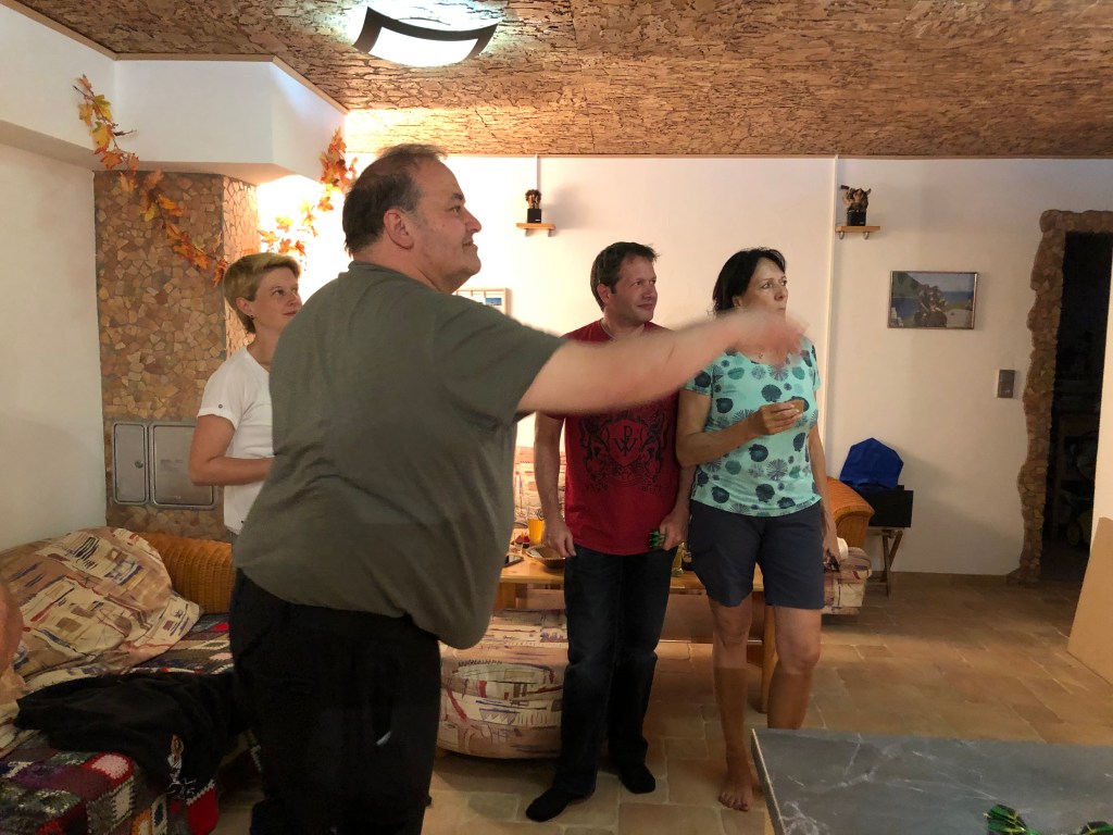 Wieder bei Anne daheim angekommen, nutzten wir unseren letzten Abend nochmal für einen Spieleabend: Chris hatte seine neue Virtual reality Brille mitgebracht, und jeder wollte das natürlich ausprobieren – ist übrigens sehr amüsant auch für die Zuschauer! Hier ein paar Bilder: