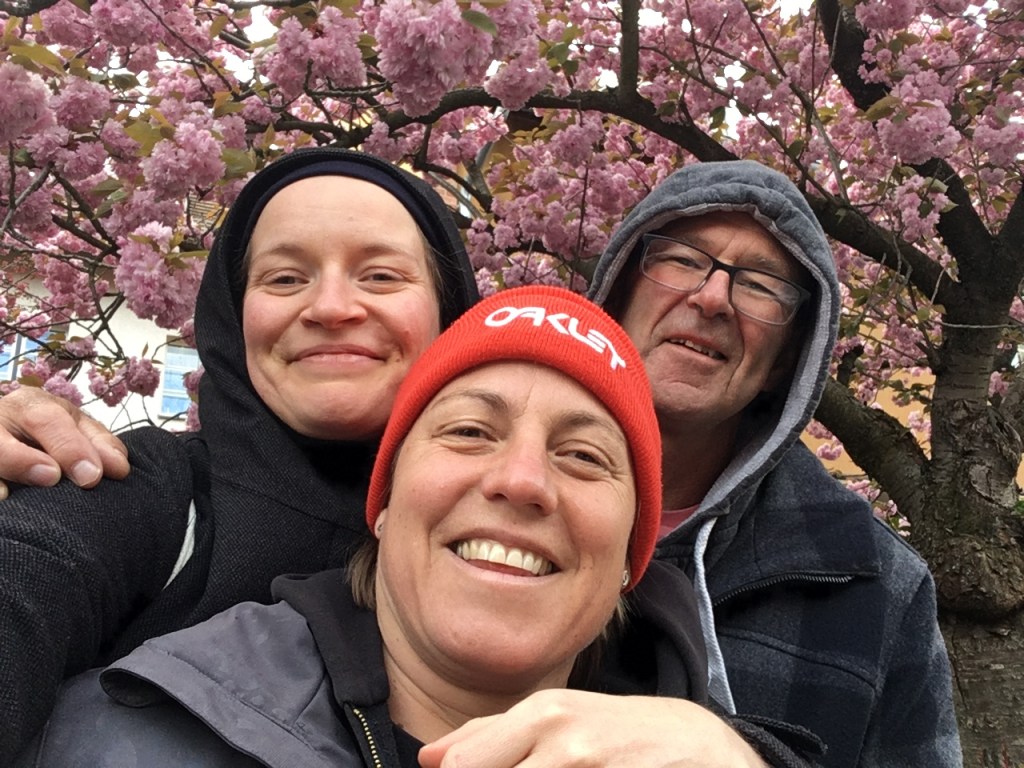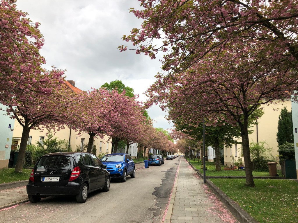 Sandra und Kira, die gerade erst Radfahren gelernt hat, und das mit 3 Jahren! Moni, die ich das erste Mal seit September wieder live gesehen habe.Blütenpracht in einer Giesinger Straße.