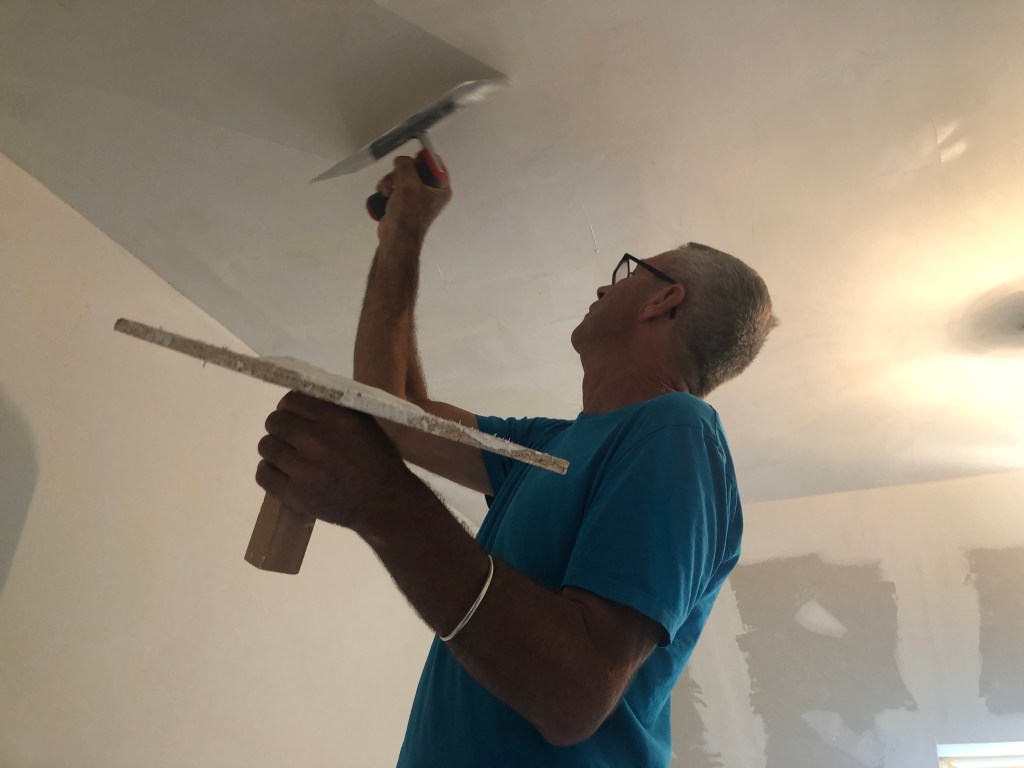 Paddy beim Spachteln der Decke.