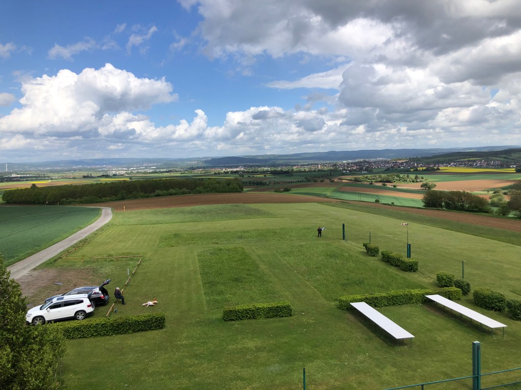 Historischer Turm in der Nähe von Schaafheim.Der Ausblick vom Turm auf die Umgebung und den Modellflugplatz direkt vorm Turm.Leckere, von Elke selbst gebackene Erdbeerkuchen, mit ihr und meinem Vater im Hintergrund.