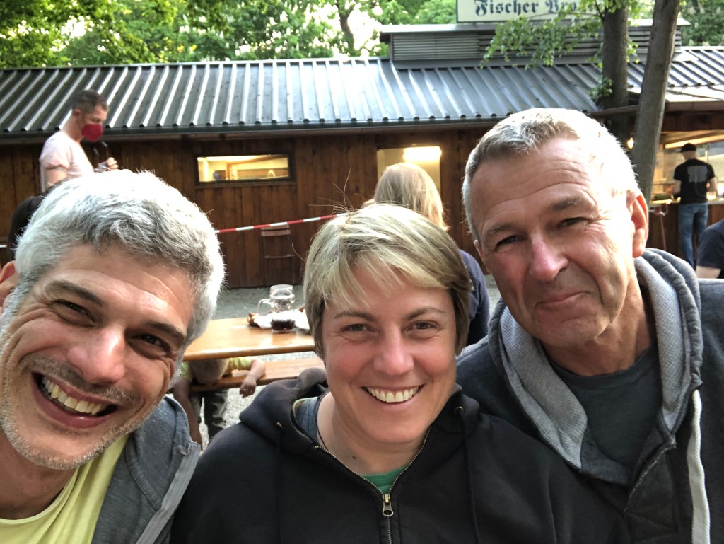 Da ich danach etwas Aufmunterung brauchte und Paddy und Anne noch ein bisschen was über die bayerische Kultur lernen wollten und es außerdem unser letzter Abend in München war, kehrten wir noch im Biergarten am Nockherberg ein, und nach einer Radlermaß ging es mir (und uns allen) wieder besser, so dass wir uns leicht angeschickert auf den Heimweg zum Hotel machen konnten.