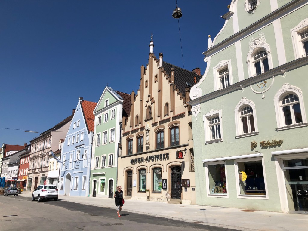Die Freisinger Innenstadt in schönstem Sonnenschein. Die Moosach, die durch Freising durchfließt.Endlich Frühstück!