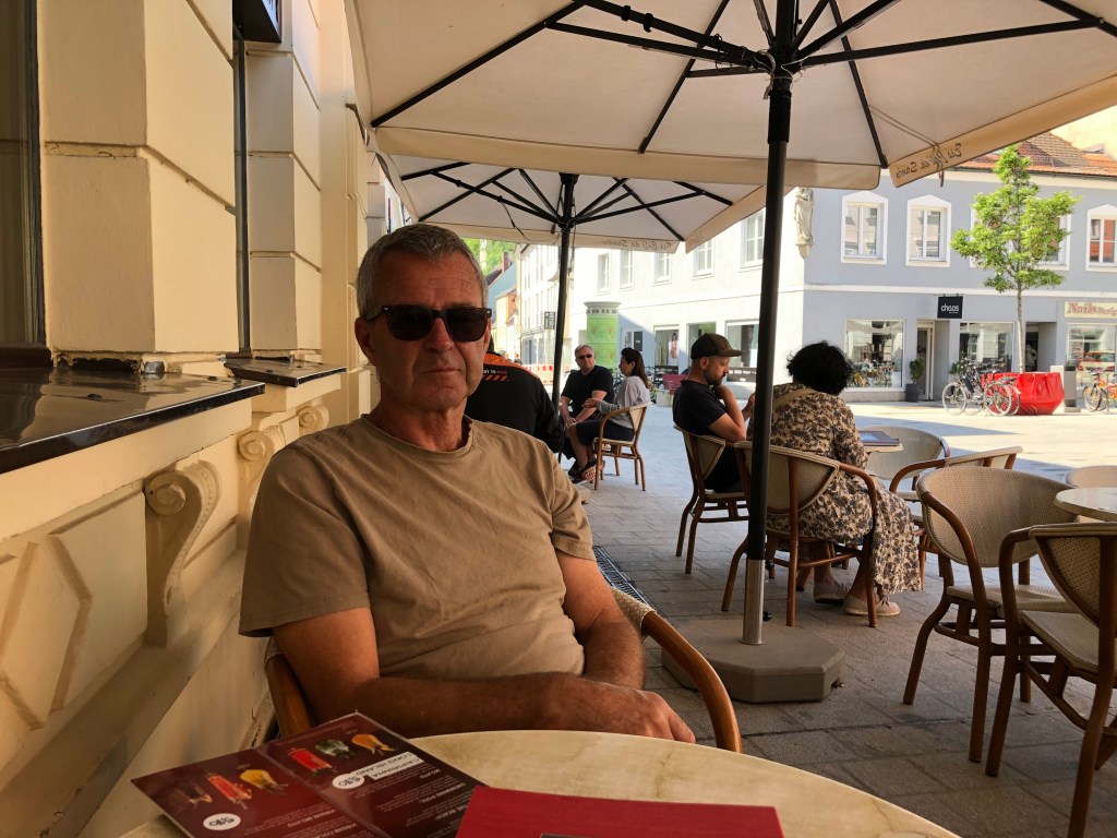 Da Paddy im Winter so viel über Freising gehört (und dank Fotos auch gesehen) hatte, wollte er jetzt live sehen, wo ich für 5 Monate gewohnt und gearbeitet habe. Gesagt getan – am Donnerstag morgen standen wir ausnahmsweise mal nicht so spät auf und fuhren nach Freising. Bei wieder schönstem Sommerwetter wanderten wir durch die Straßen, und ich zeigte ihm meine „Kurzzeitheimat“. Nach einiger Zeit müde gewandert gönnten wir uns dann ein Frühstück in einem Cafe in der Freisinger Innenstadt.