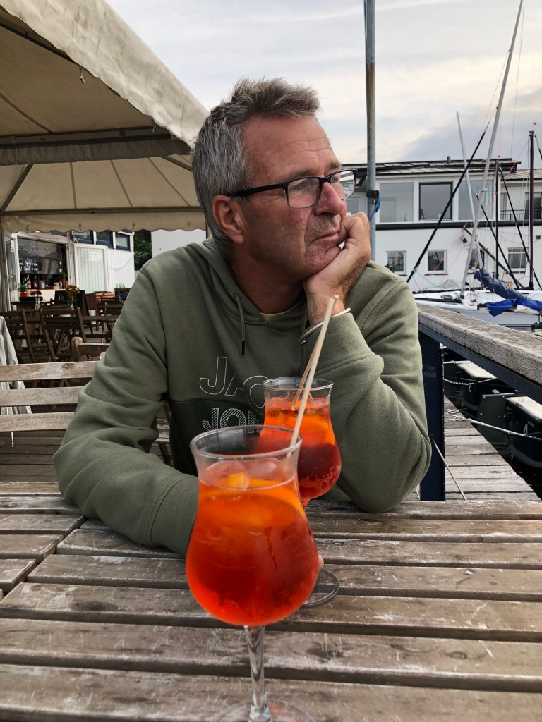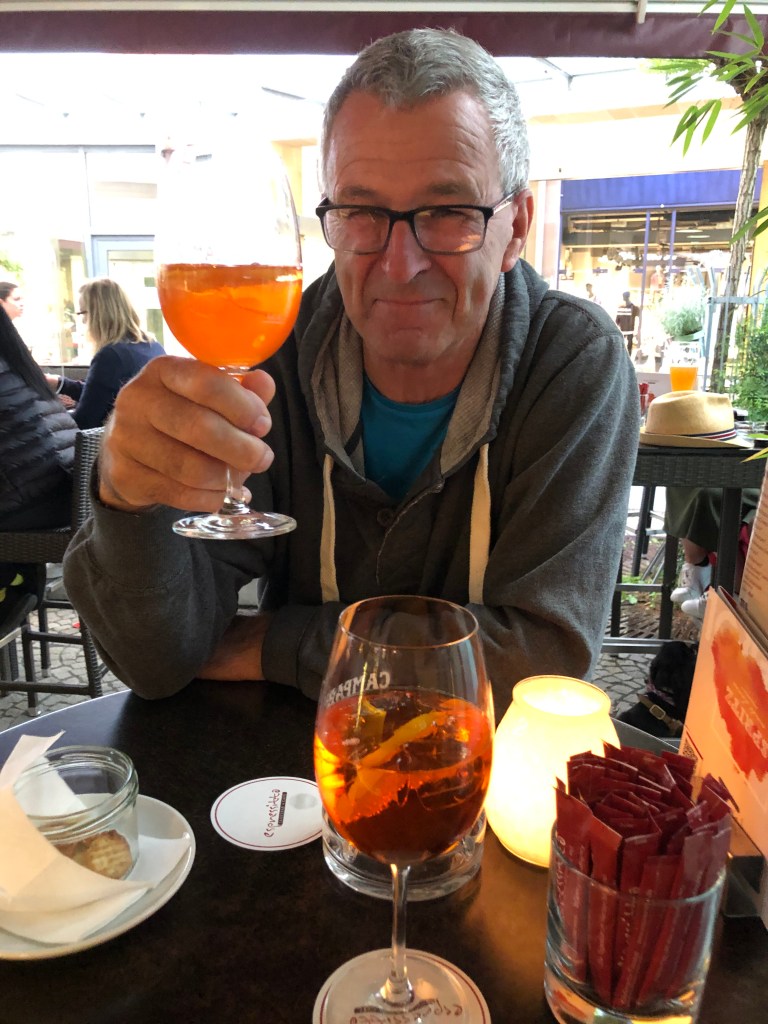 Paddy mit seinem neuen Lieblingsgetränk: Rhabarber-Aperol-Spritz.