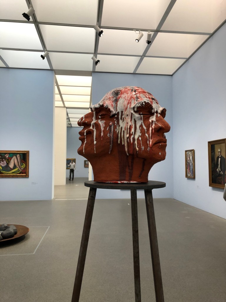 Da der Sonntag als sehr verregnet angesagt war, beschlossen wir, uns ein bisschen Kultur anzutun und buchten Eintrittskarten in der Pinakothek der Moderne. Nach unserem Frühstück im Cafe um die Ecke machten wir uns durch den Nieselregen auf zum Museum, wo wir die nächsten paar Stunden verbrachten. ich muss zugeben, dass das meiste jetzt nicht so meins war, aber ich bin auch nicht wirklich ein Museums- (oder Kunst-)mensch. Ich war danach einfach nur kaputt… aber nach Kaffee und Butterbreze an der frischen Luft ging es mir gleich wieder besser. Hier ein paar Eindrücke:
