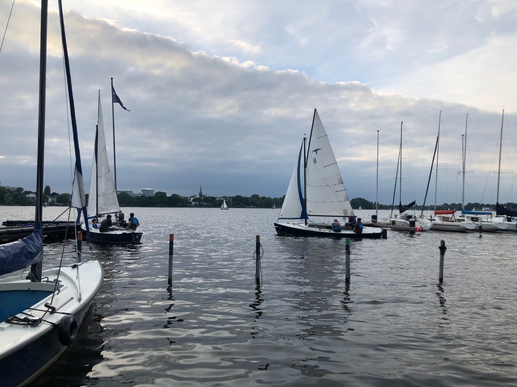 Und so fuhren wir am Donnerstag mittag direkt nach der Impfung los nach Hamburg, wo wir uns in einem recht günstigen, aber netten Hotel nahe der Außenalster eingebucht hatten. Nach dem Einchecken unternahmen wir noch einen kleinen Spaziergang in der unmittelbaren Umgebung entlang der Außenalster und durch das St. Georgs-Viertel: